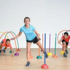 Each 8″ dia dome has 4 connection points, allowing for more than one attachment in each dome. Teachers can also insert hoops 2 ways in the domes. Simply snap the attachments into place to create obstacles. When the action ends, it is easy to quickly disassemble the obstacles for compact storage.