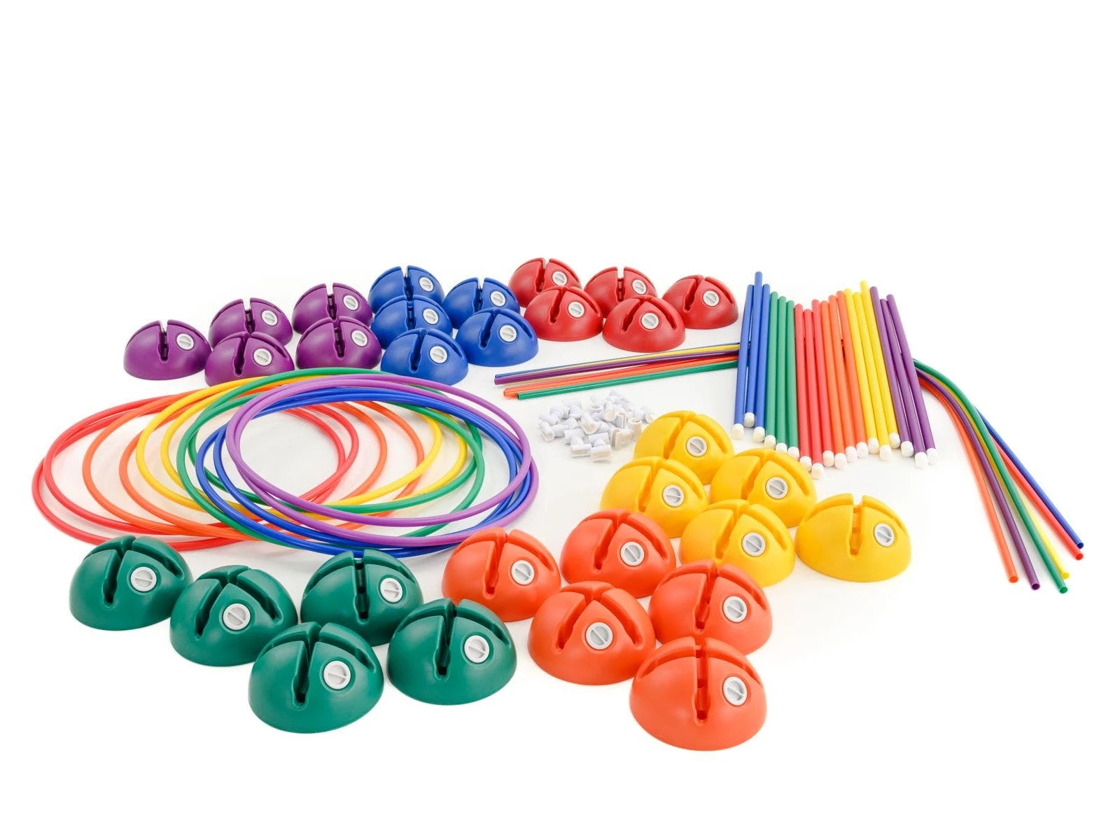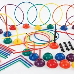 Simply snap pieces into place, and you’re ready to go! These ABS plastic domes include a center hole and four holes around the edge. This allows teachers and students to place standards, arches, or hoops in them to create obstacles. The domes are strong enough to keep their shape even if students step or stand on them. All other components in these packs are made of a durable, thick plastic that will withstand tough use in any crowd.