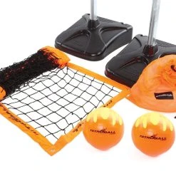 - Basic Pack. Includes 2 balls (9″ dia), 1 net (32’W x 36″H), a storage bag, and activity instructions.
