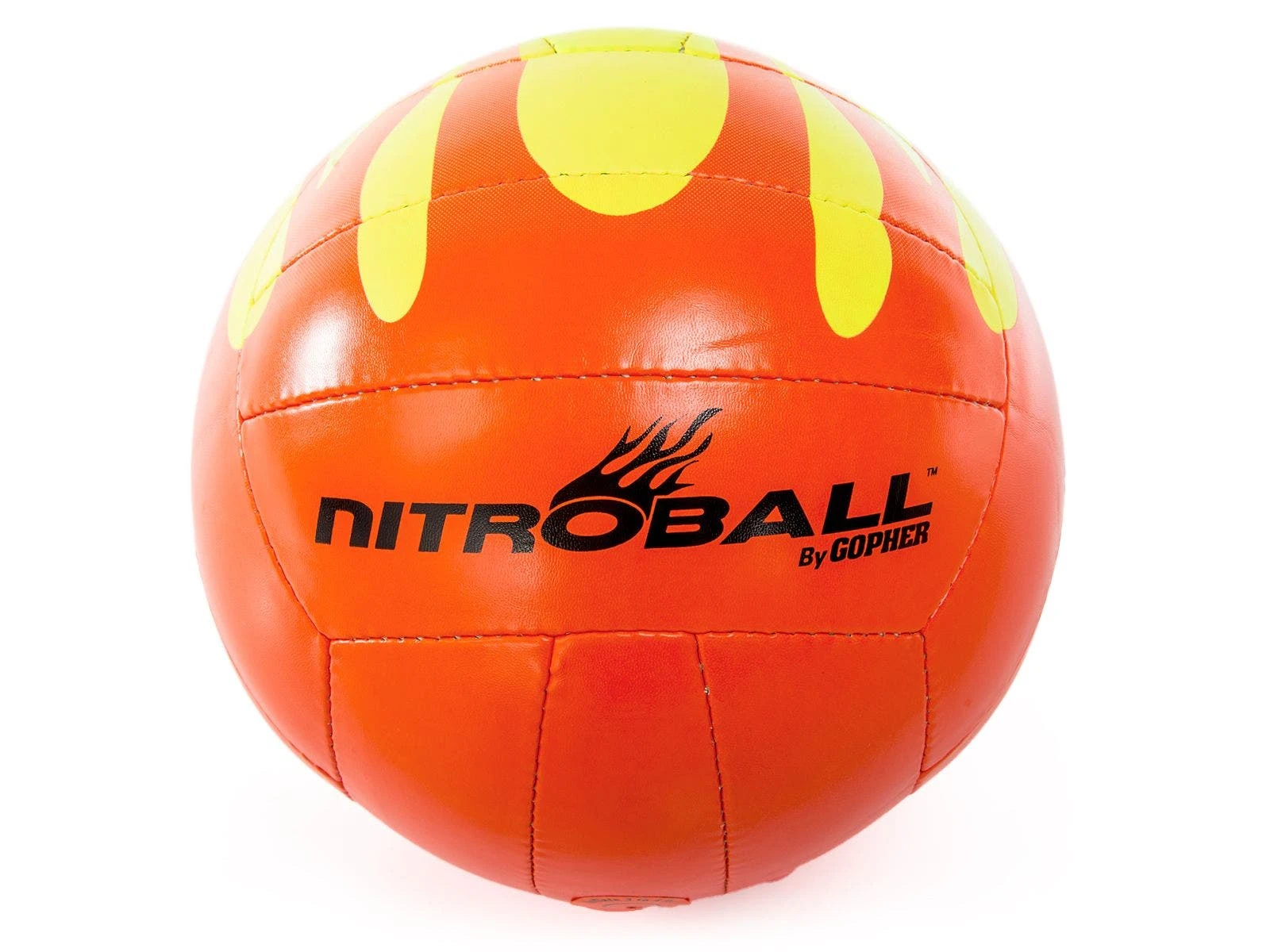 Larger and lighter than an official volleyball, the NitroBall bends all the rules for an inverted game of volleyball! The ball is 40% lighter than a standard volleyball and measures 10″ dia. A soft cover allows sting-free play and is safe for indoor/outdoor use. 12 oz.