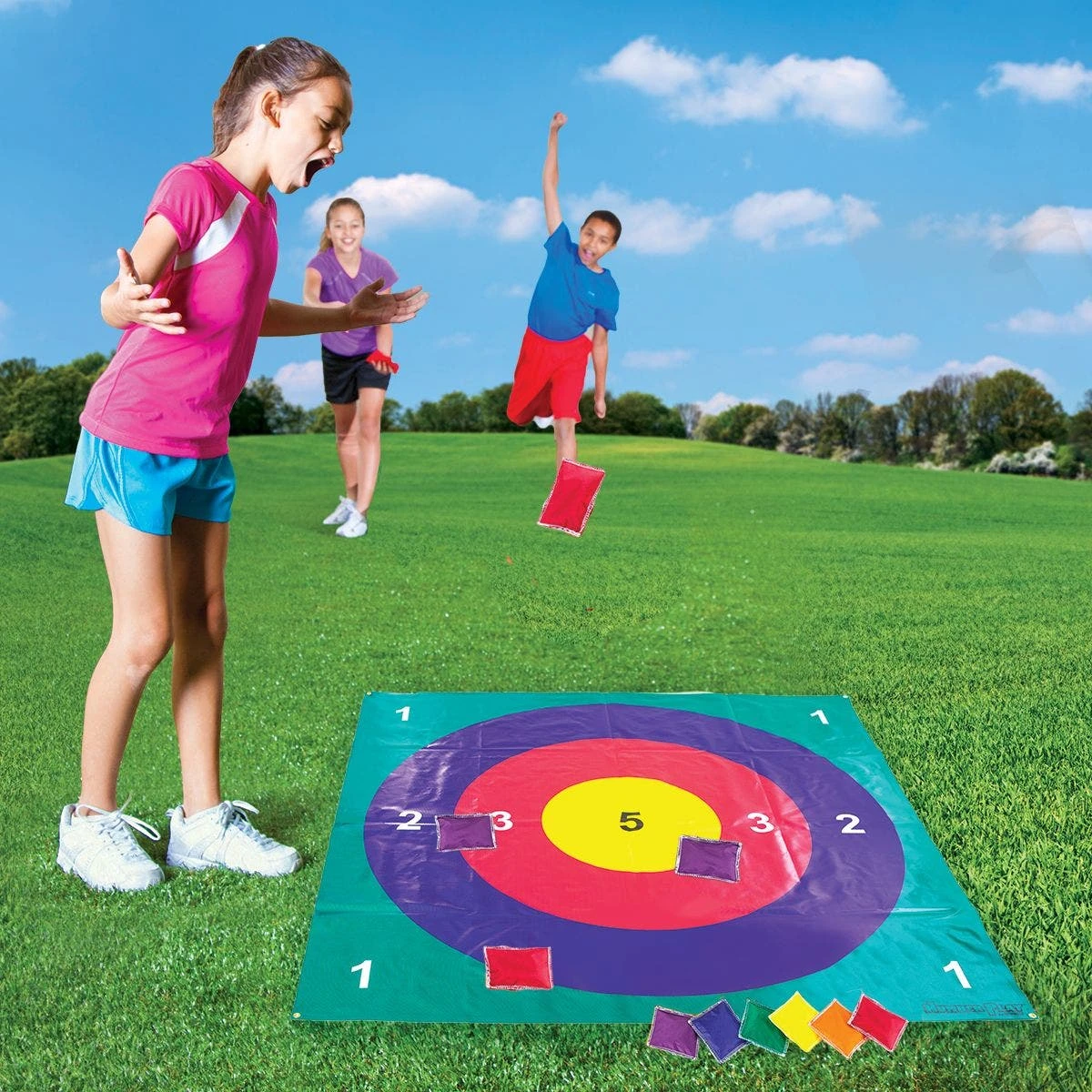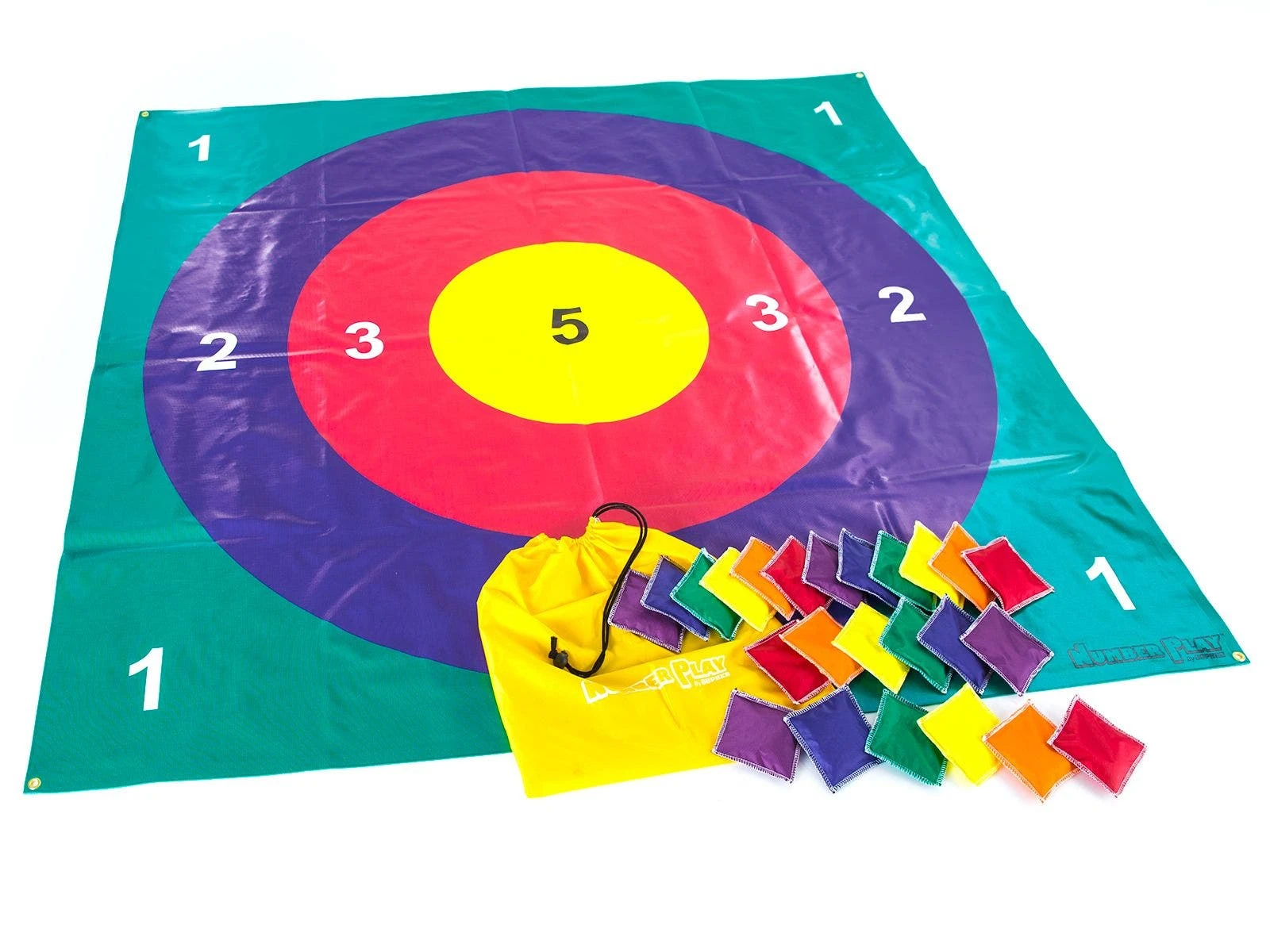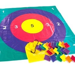 NumberPlay Target is a large 5’L x 5’W mat with a target printed on with different point values and colors for each of the 4 zones. Set includes 1 mat and 24 beanbags.