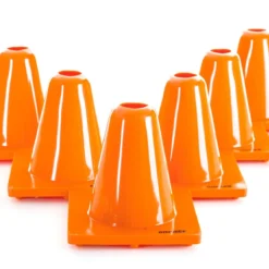 It’s hard not to spot these cones, thanks to their bright orange color. This makes them great for marking anything from drainage holes to goal lines. Ultraviolet inhibitors preserve that bright color for years to come. With 5 available sizes, you have plenty of options with these cones.