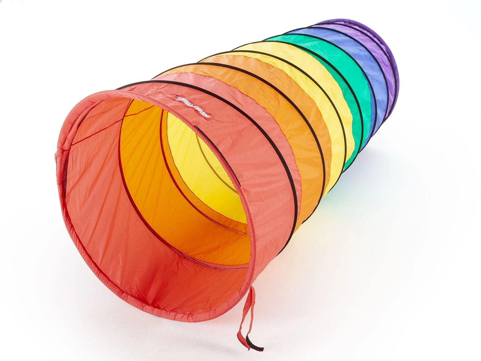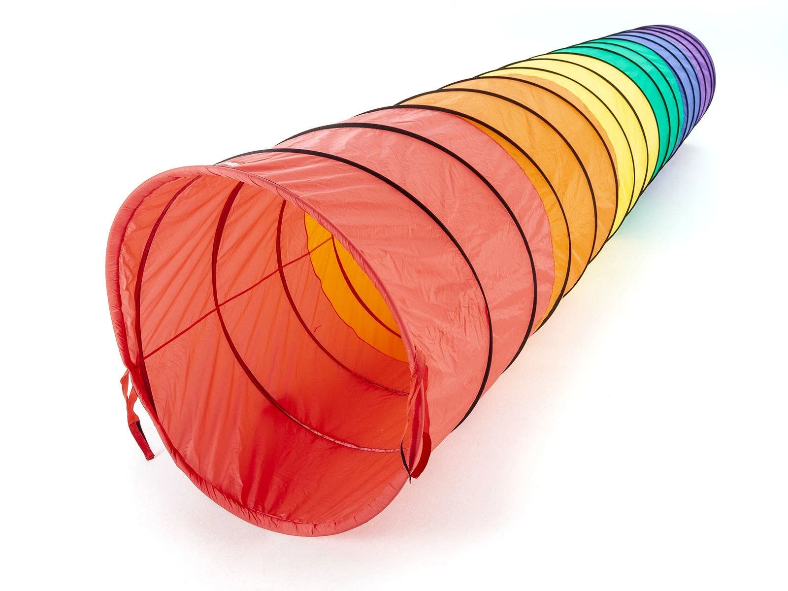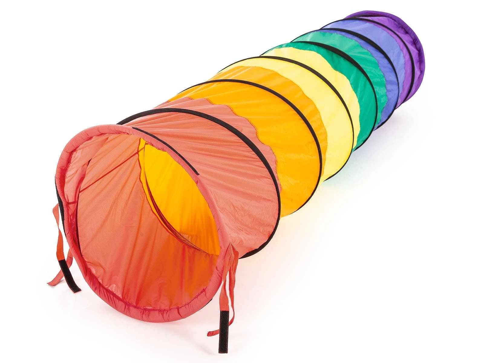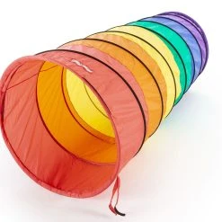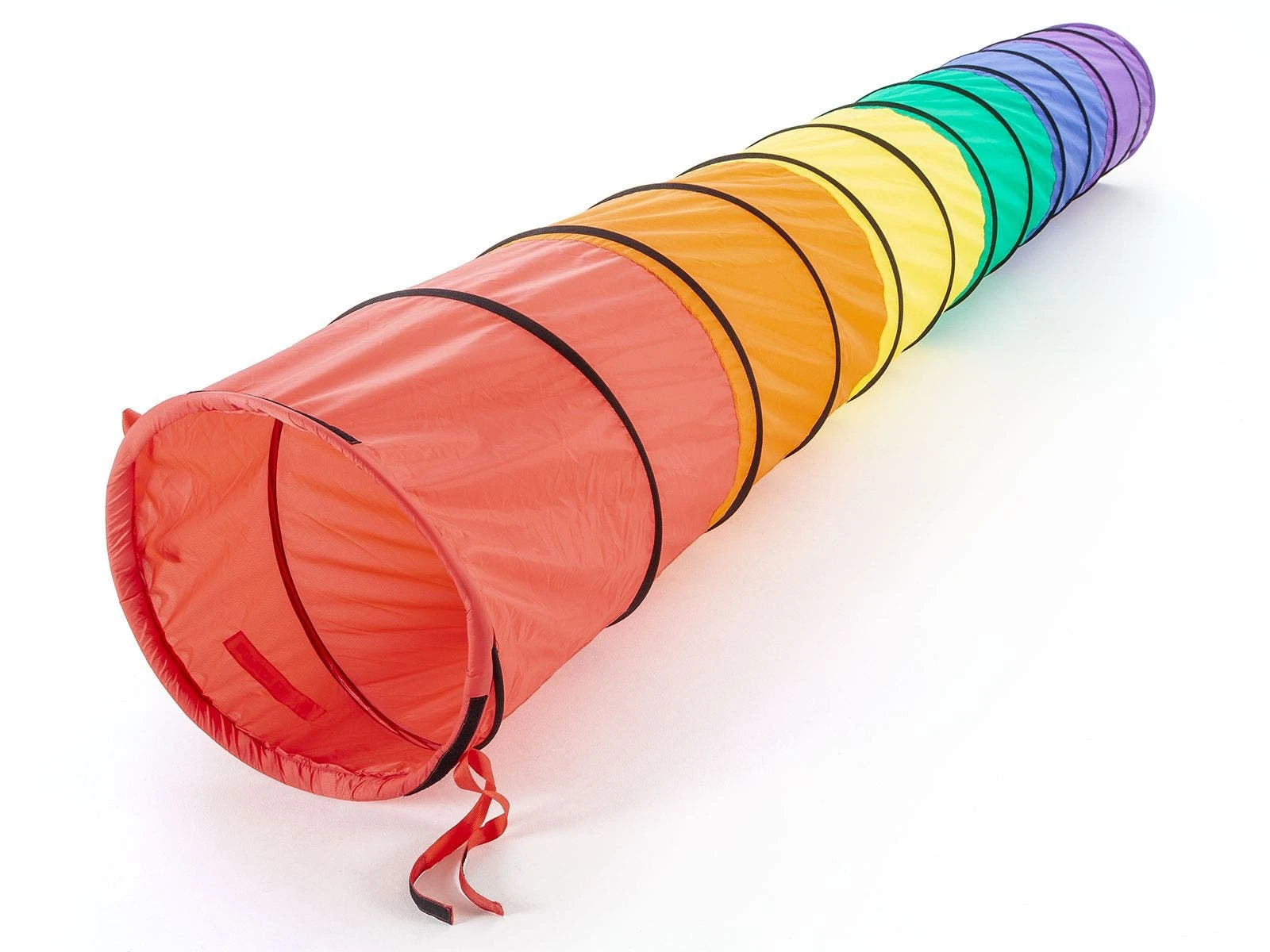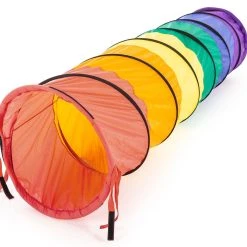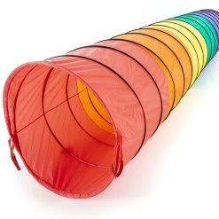 Extra wide spring-steel frame is easy to access for larger and older kids, and hook-and-loop fastener connections on ends allow teachers to create longer, more creative designs in seconds. Long-lasting nylon cover provides safe and comfortable use. Crawl tunnels collapse for easy storage. Choose from 24″ dia or 40″ dia in two lengths in Red or exciting Rainbow colors.