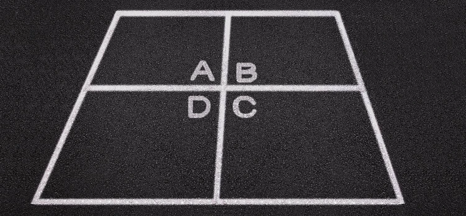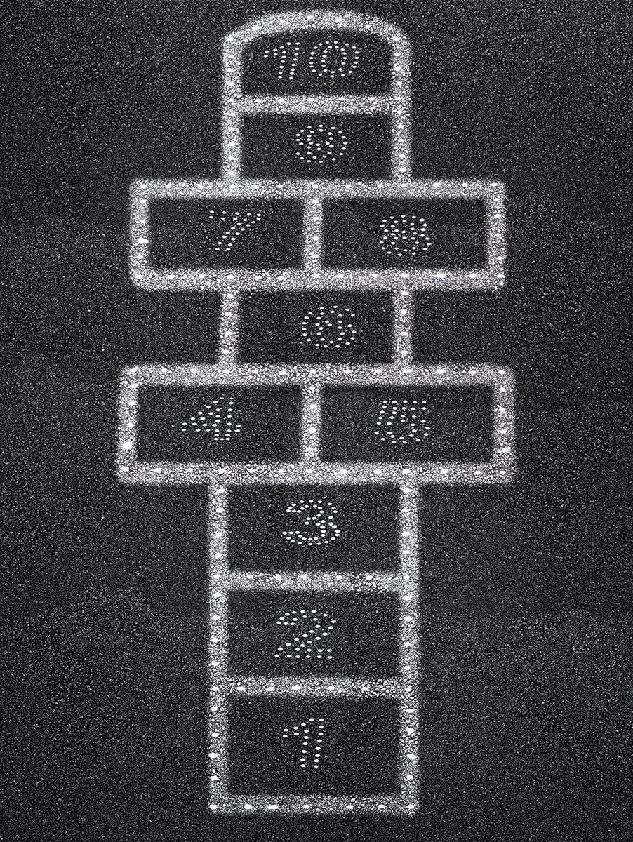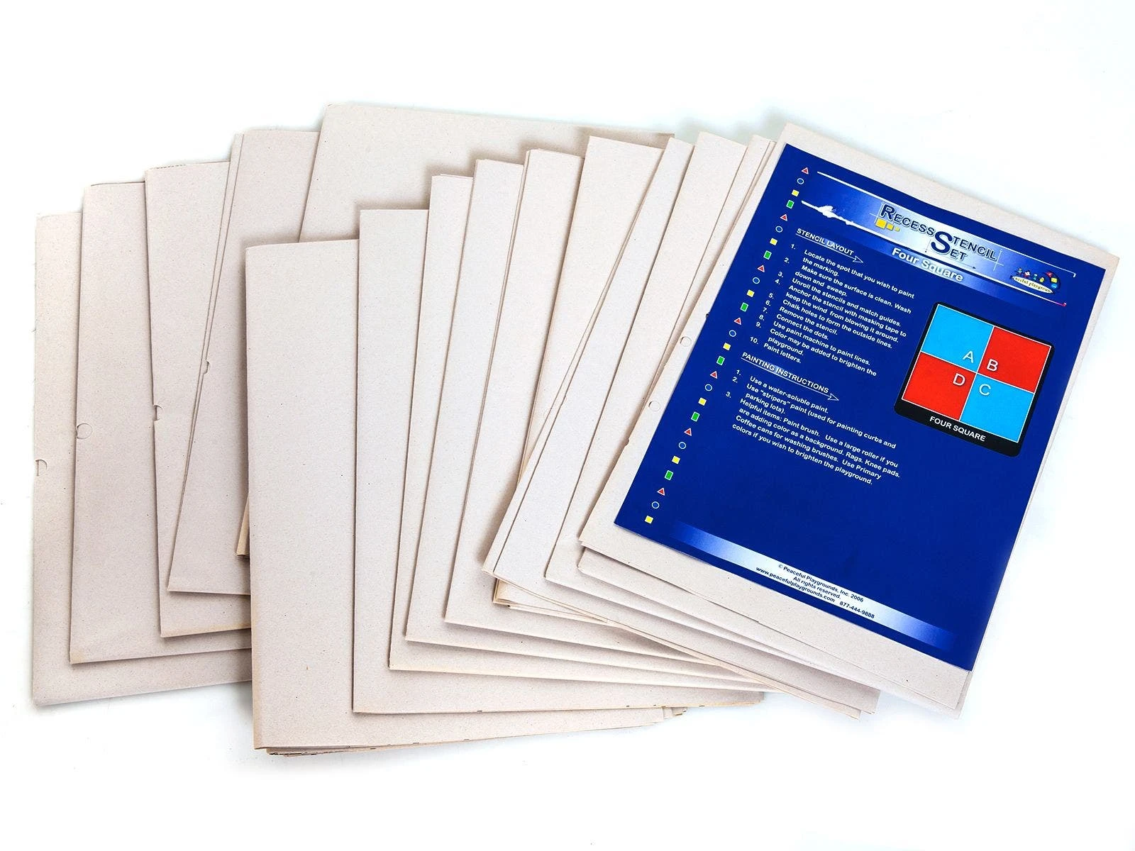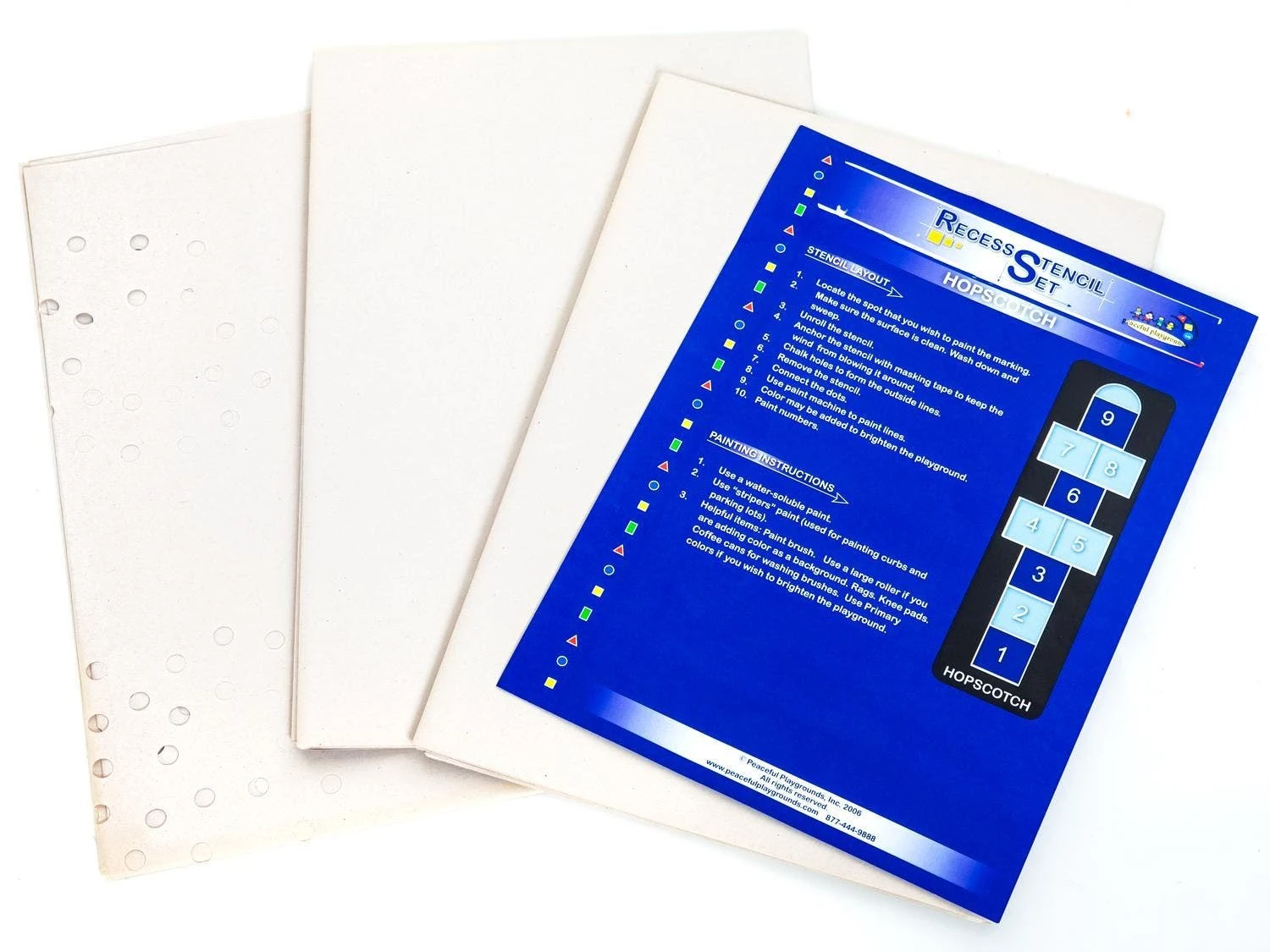 Stencils are available in three convenient templates to guide you during application. Quickly create a hopscotch board with the Hopscotch Stencil. All you have to do is fill in the dots on the paper template and then connect them to form the board. When setting up a 4-square court, trace the dots on the 16 pieces of paper to draw a court in no time.