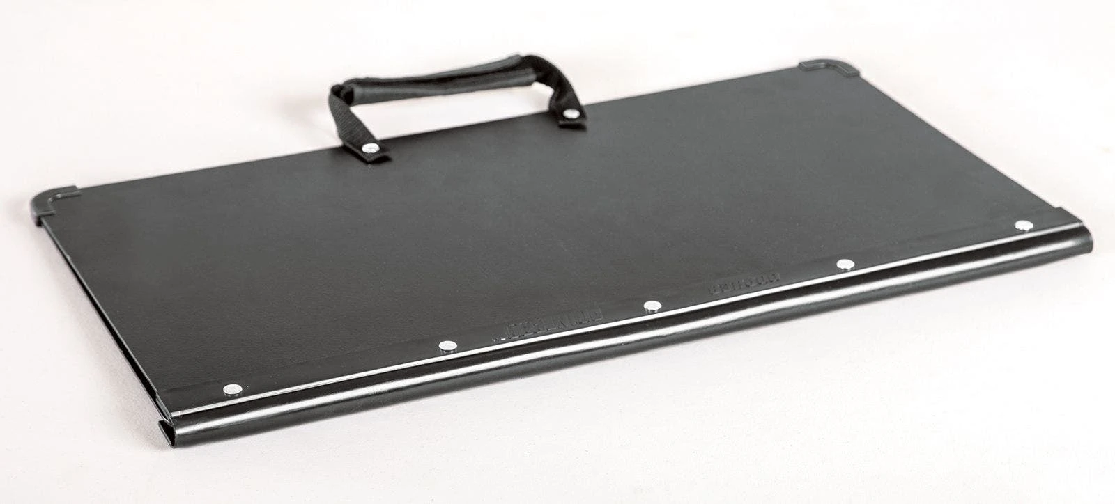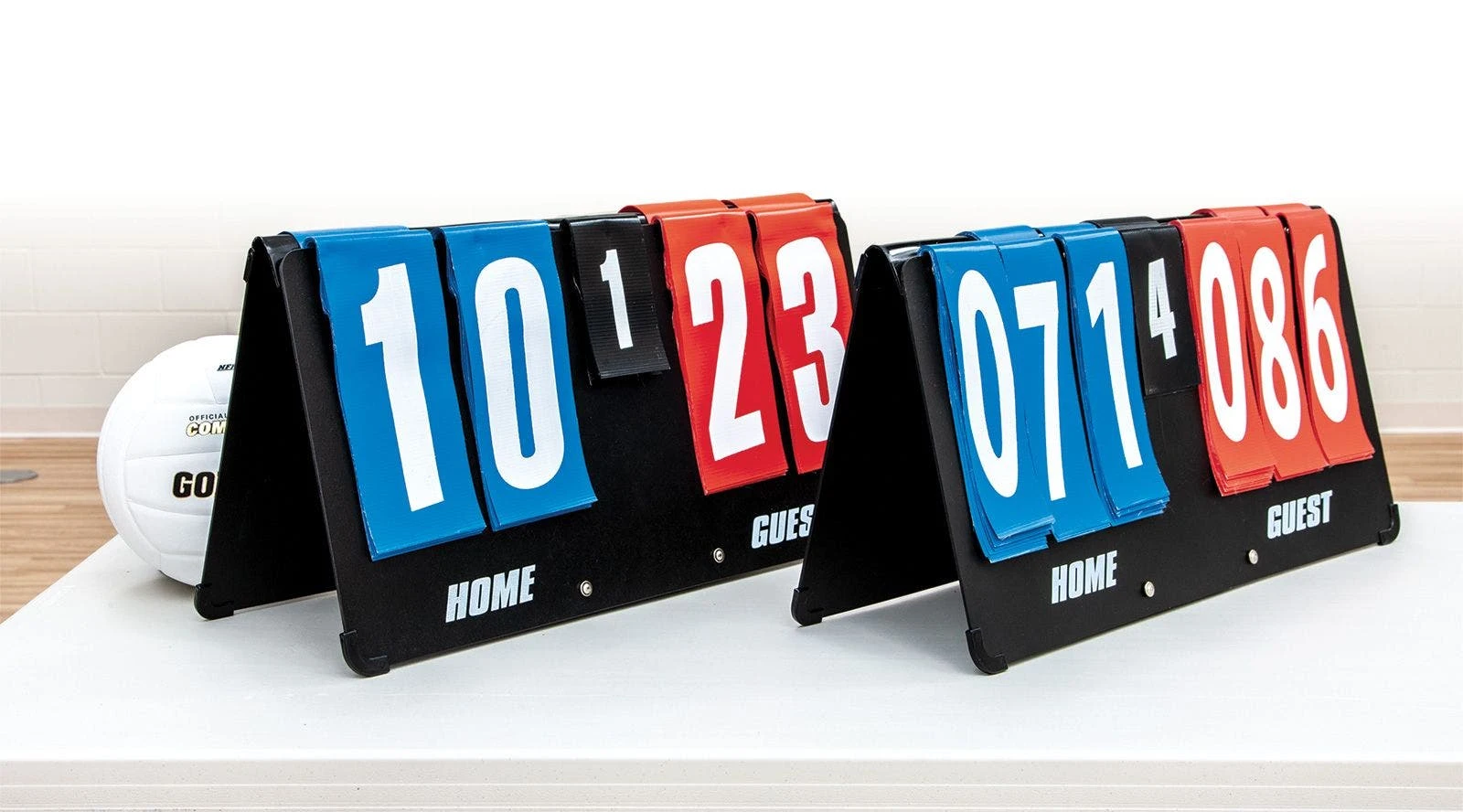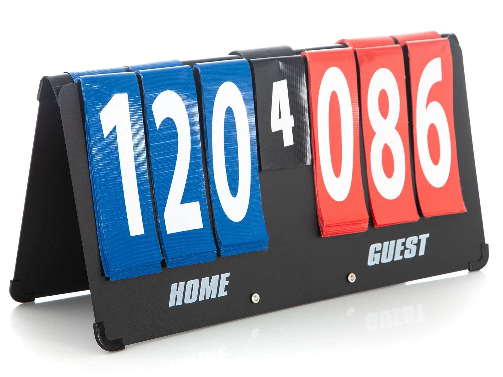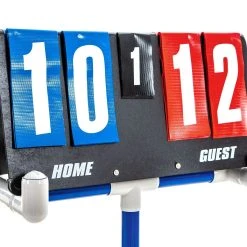 Operators simply flip numbers over to display the score. Scoreboard also displays period or quarter. Compact and lightweight, it is easy to pick up and carry this scoreboard. It folds into itself for compact storage and to protect the numbers when not in use. 5″L handles make transportation easy. Use as a tabletop scoreboard or extend the viewing height with a stand.
