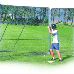 The backstop panel measures 10’W x 8’H, side panels measure 4’W x 8’H, and the top panel measures 10’W x 4’H.
