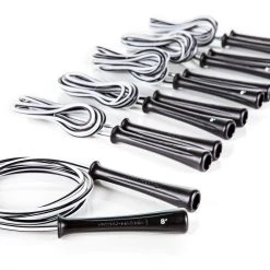 Thinner, lighter, and built for speed, students can take their jumping workouts up a notch with speed ropes! An ergonomic handle and varying lengths and colors make it easy to find the right rope and jump individually or with partners. High durability makes them optimal for institutional gym classes.