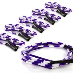 The heavier weight of the durable 1-1/2″L x 7/16″ dia plastic segments, coupled with the PVC section offers a rope that turns at slower speeds for beginners. Jumpers can then focus on form and rhythm vs speed. The PVC section also provides an audible jumping cue so its easy for jumpers to quickly get in a rhythm and lessens the chances of missing.
