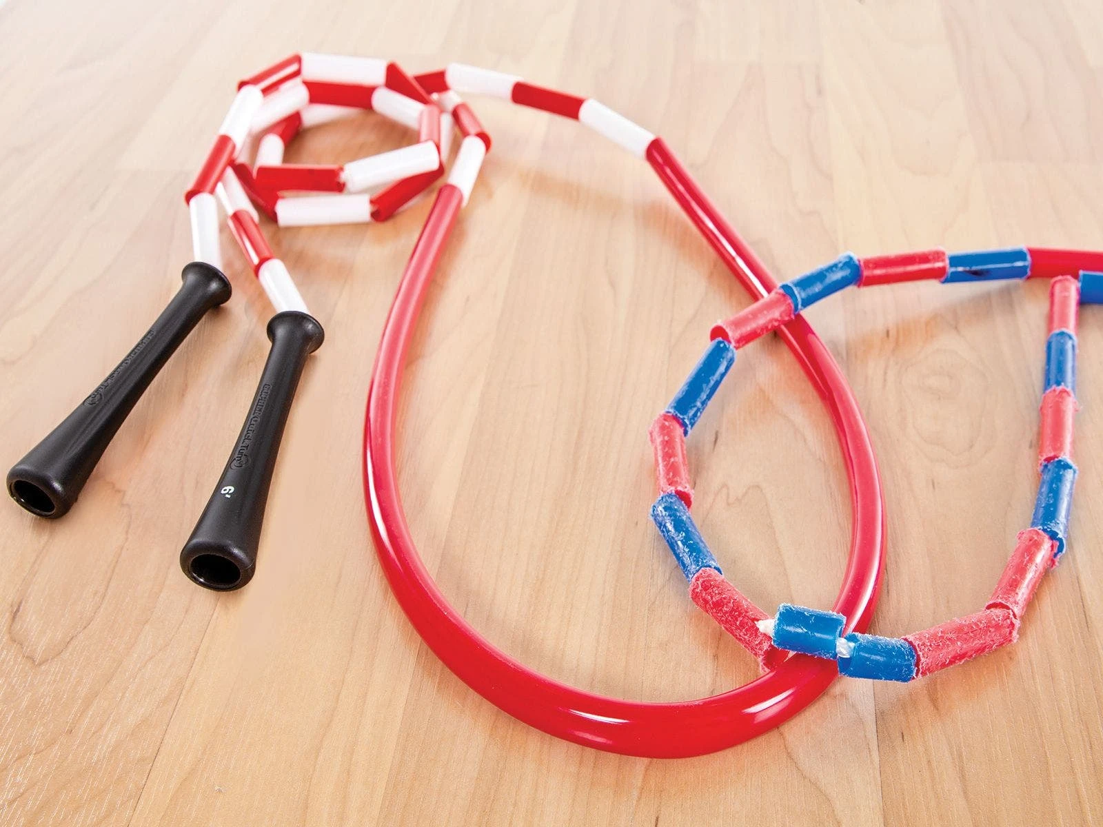 We took our traditional segmented rope and added a soft, non-marring PVC section to make it even tougher! The PVC absorbs impact and protects against repeated use, all while spinning true to design. Durable plastic segments in bright colors slow the rope and are fun for beginners.