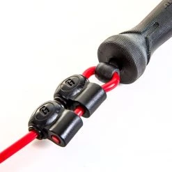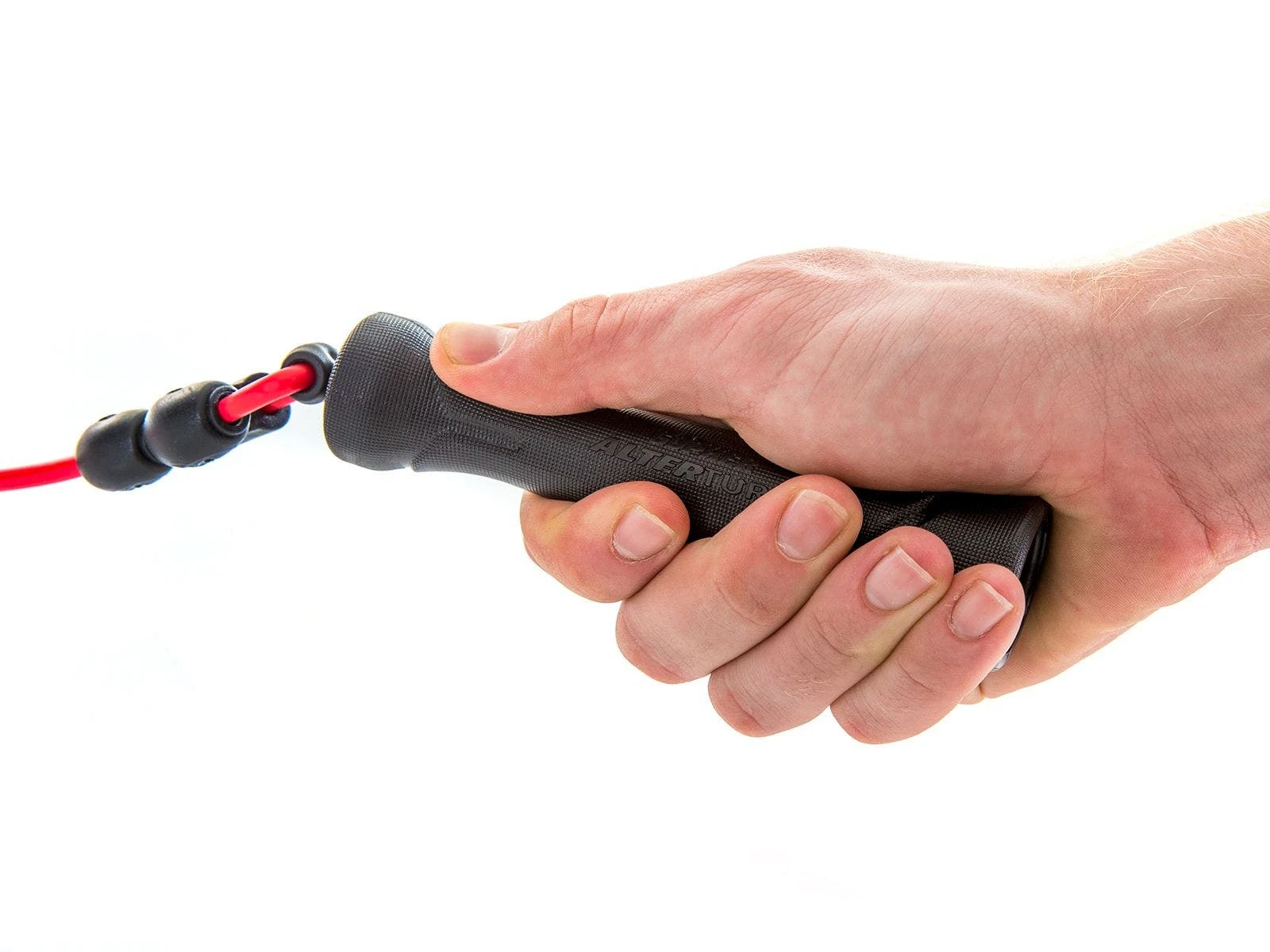 Durable 1/4”dia PVC rope withstands impacts on concrete, gym flooring, and anywhere else you’re jumping. Textured handle provides control to minimize accidental damage to the rope.