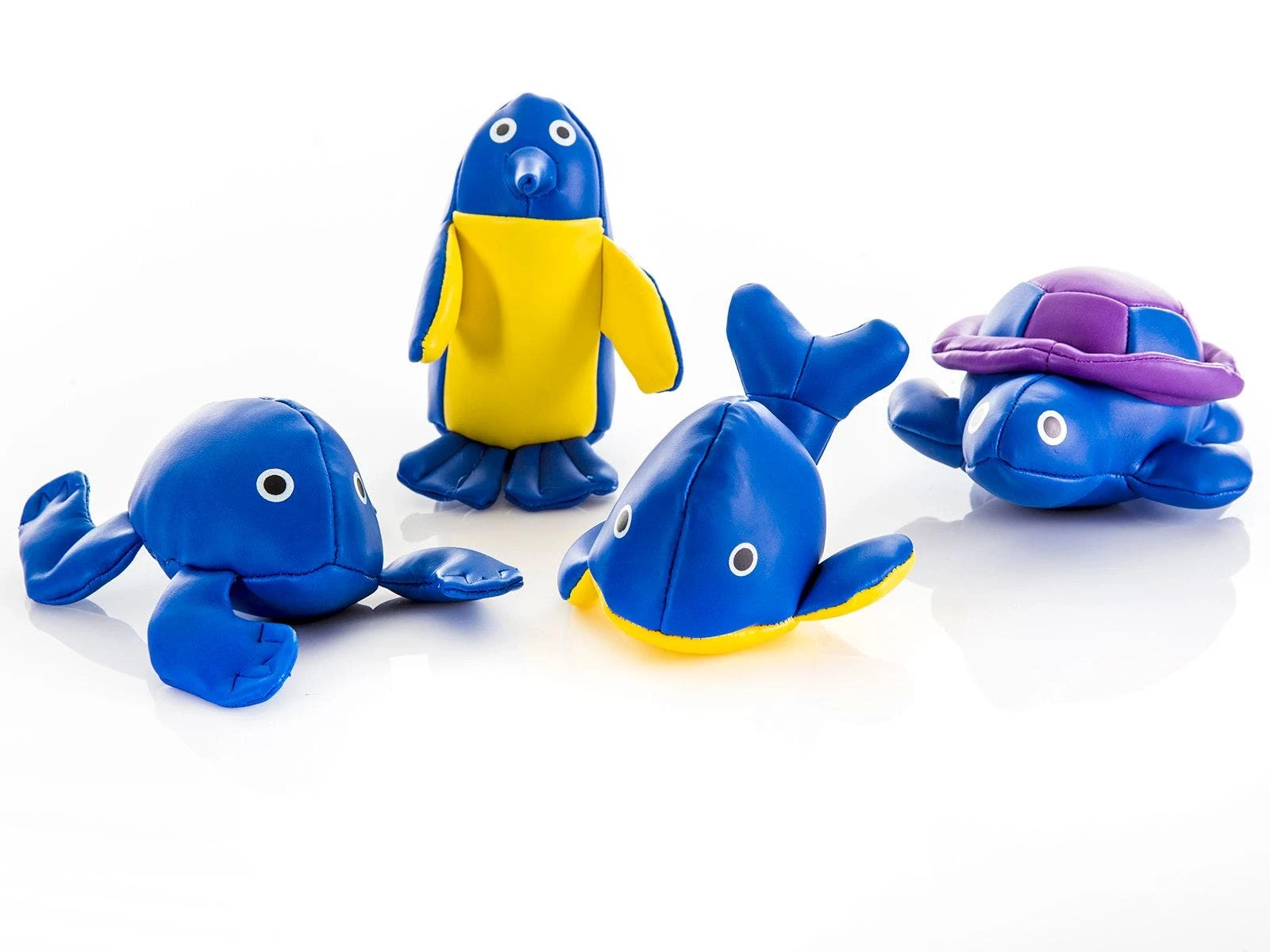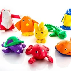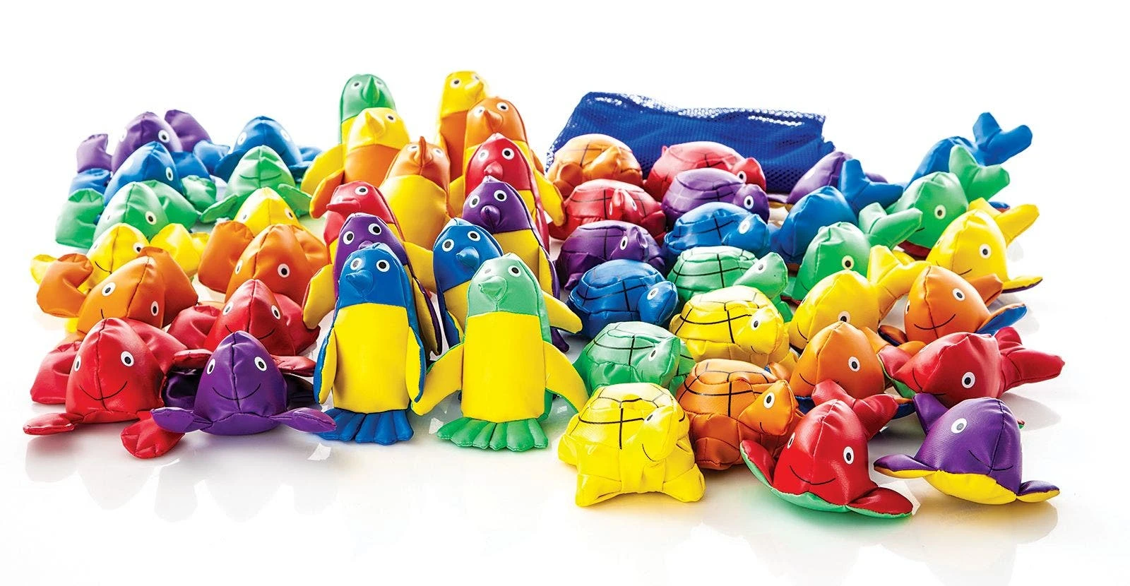Get beanbags in fun land and sea animal shapes! These durable, yet soft vinyl animal beanbags come in bright Rainbow colors to add fun and instant organization to teams and activities.