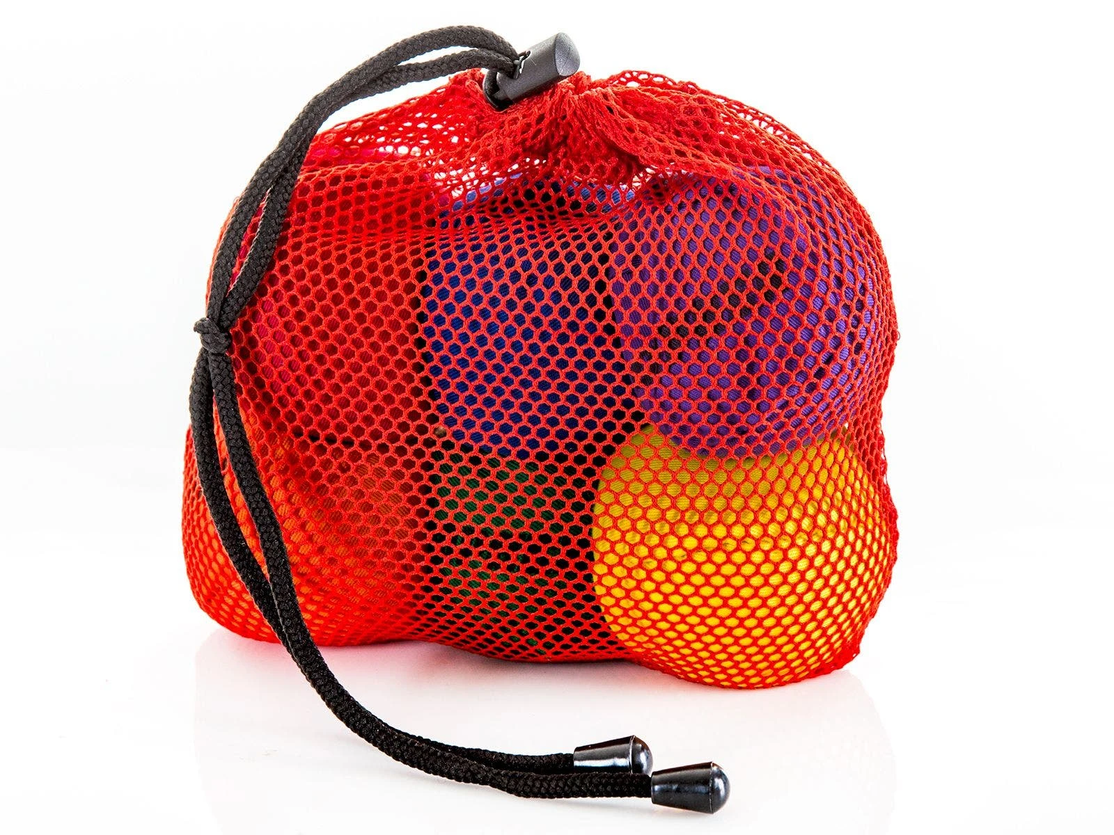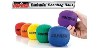 Set includes 1 beanbag in each of the 6 Rainbow colors and a custom carrying bag with a drawstring for easy storage and transportation.