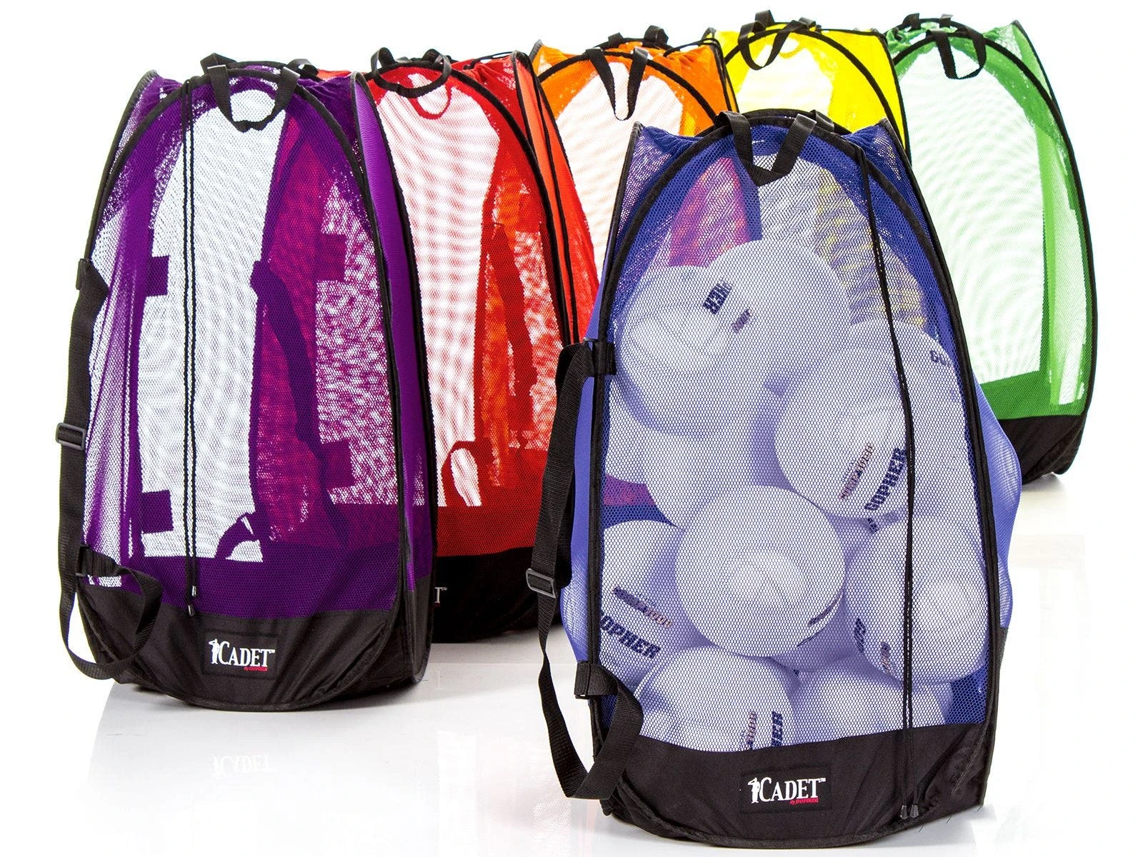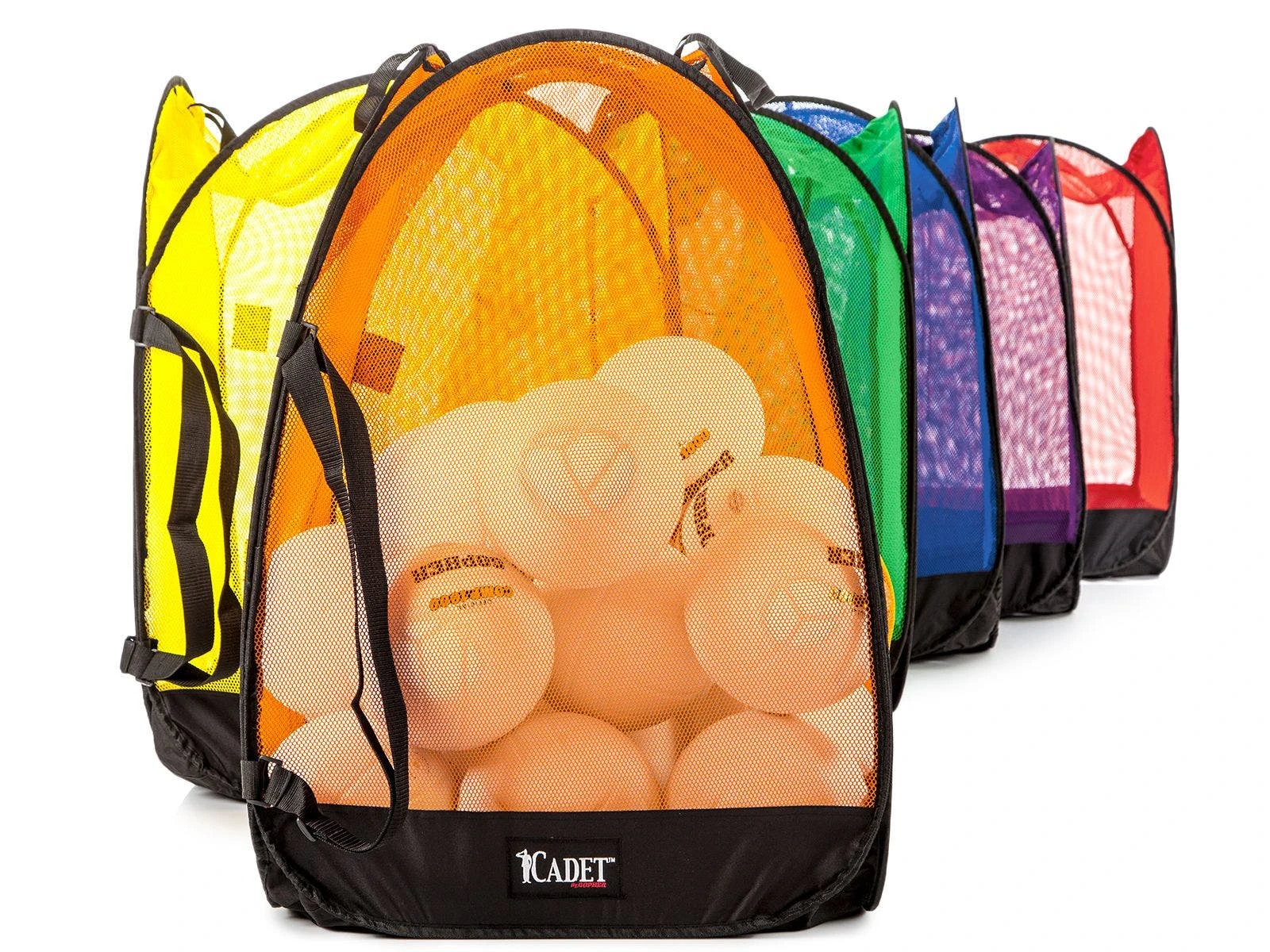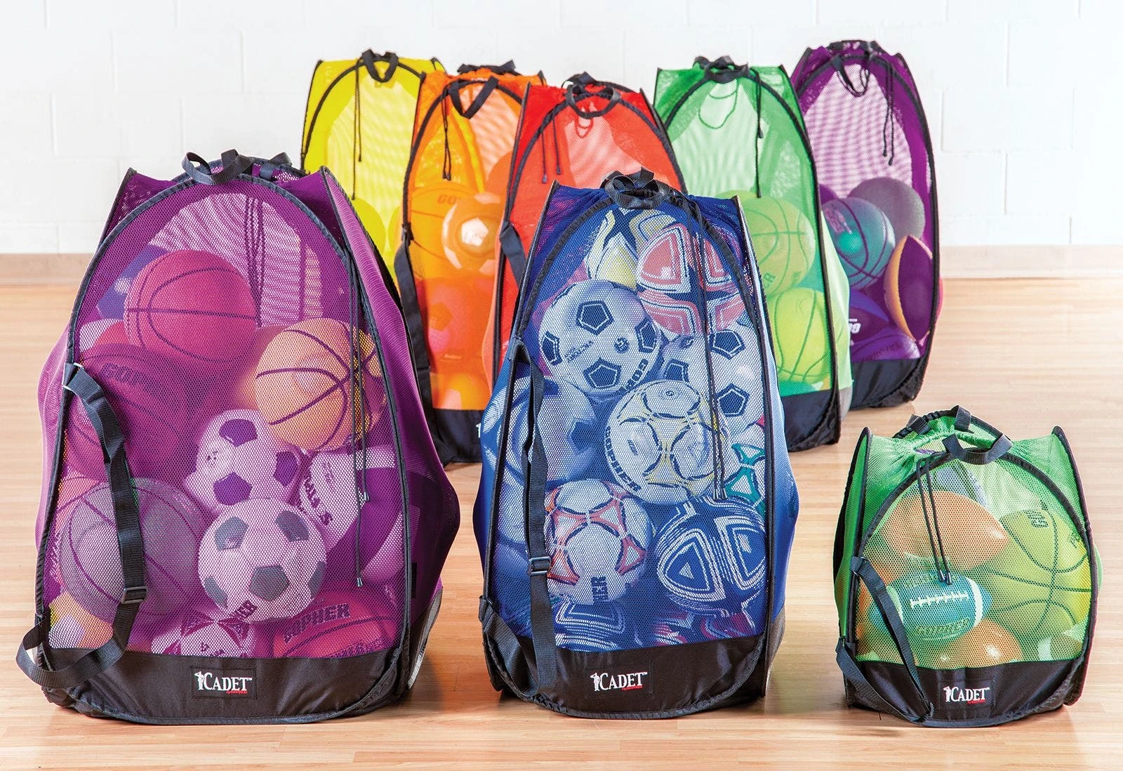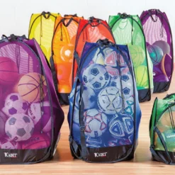 Six Rainbow colors offer endless possibilities for organization. Colorful construction also means these bags are easily incorporated into other activities. Available in 3 sizes, these bags accommodate a myriad of different ball types. Large sizes can easily accommodate 24 official basketballs, making these the largest size mesh bags for storage we offer.