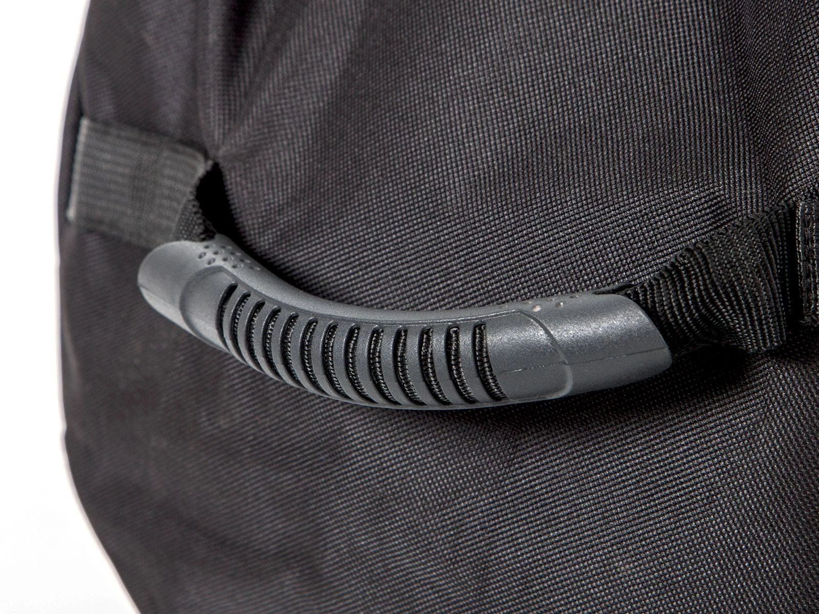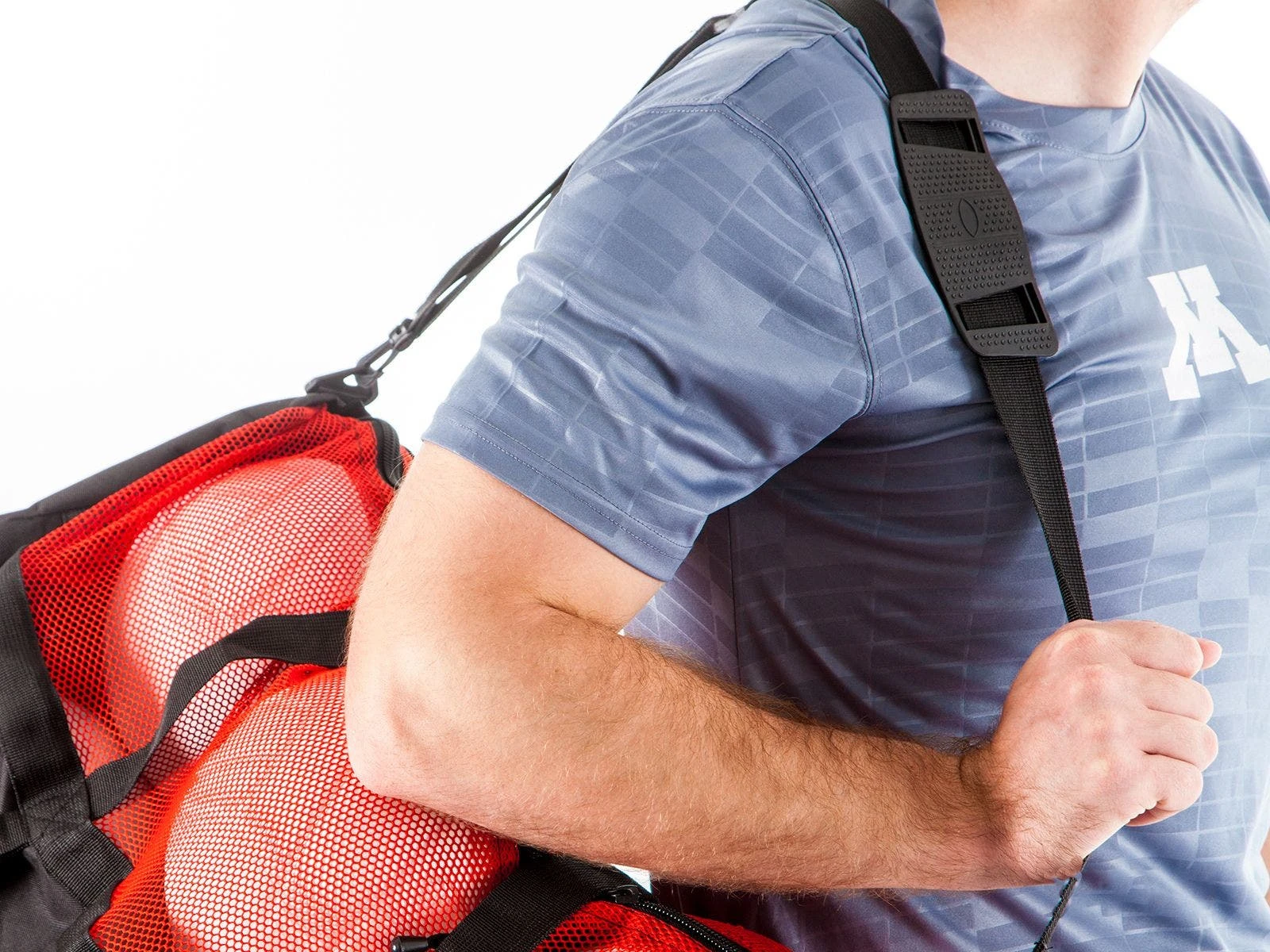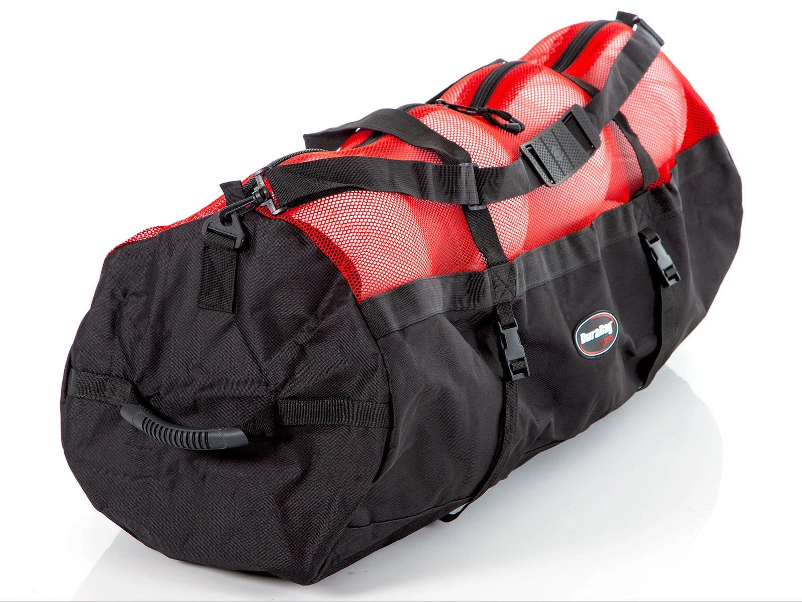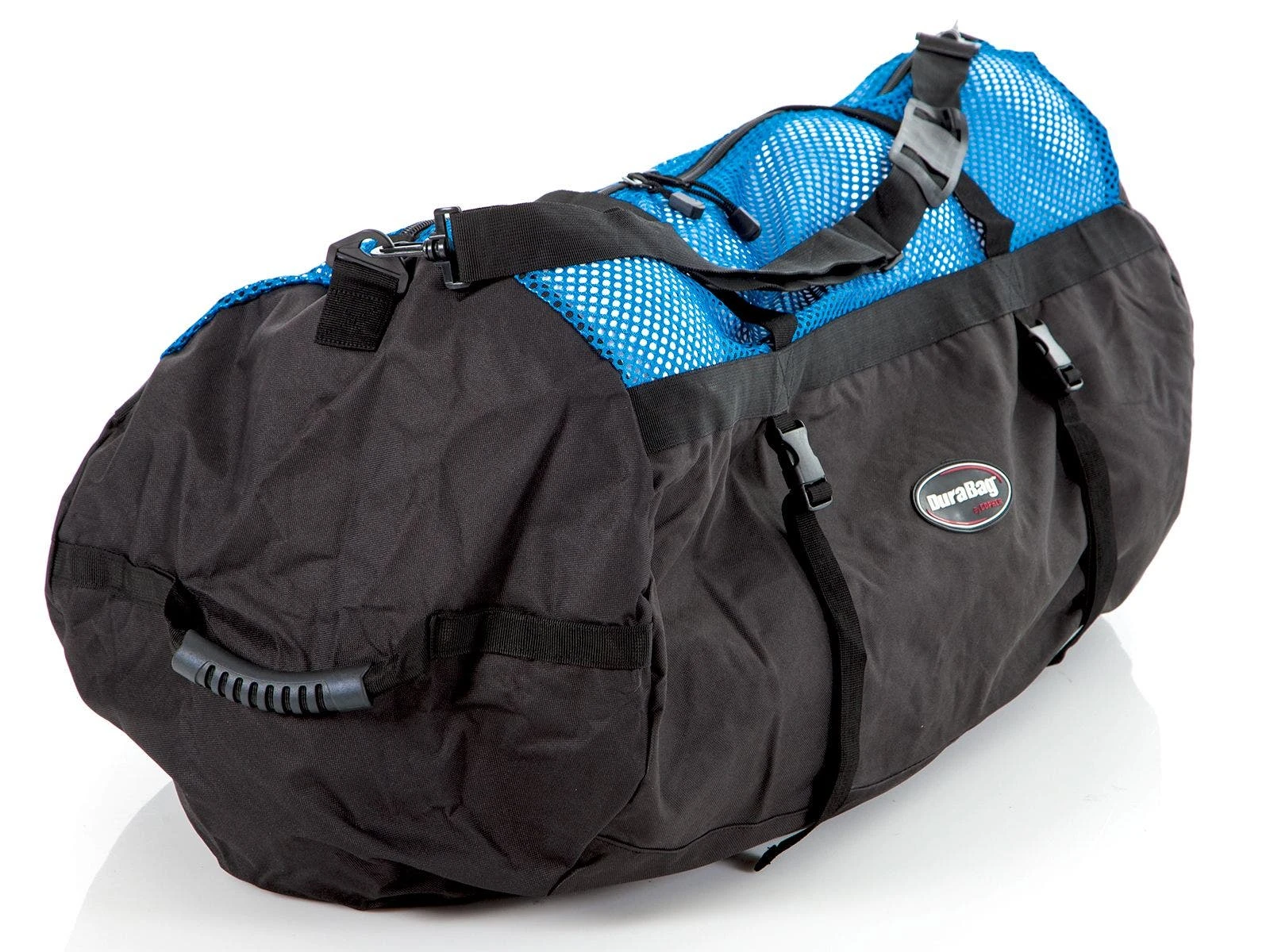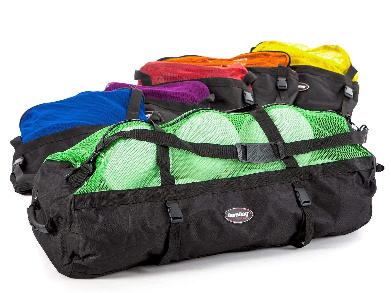 DuraBag Duffels have a non-marring polyester mesh top for ventilation and preventing moisture build-up. On the bottom, Cordura nylon provides durability an protects contents when duffel is set down on floors, concrete, grass, and more. Each bag features hand straps with a hook-and-loop fastener closure, flexible rubber hand straps on each end, and a pivoting shoulder strap to help carry heavy, bulky loads. A zipper enclosure ensures the bag remains secure at all times.
