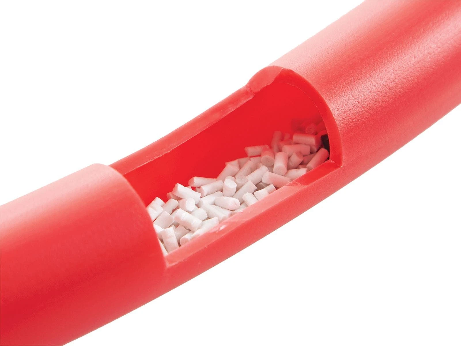 Hassle-free seams and fused-together ends create a continuous level of comfort and durability for these weighted hoops. Traditional hoops are constructed by extrusion molding and the ends are fitted with a plastic dowel or insert. The insert is stapled in place to attach the ends and then the staples are covered by a label. Over time, the label can wear and the staples can come loose, which creates dangerous sharp points. Since they’re fused together, these hoops are staple-free and you never have to worry about them coming apart!
