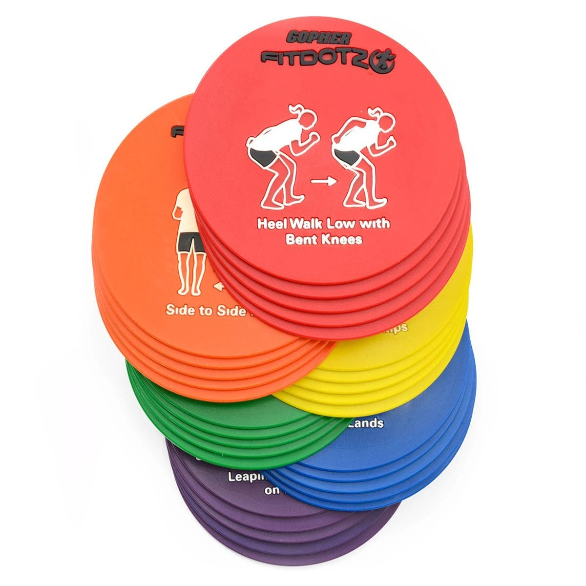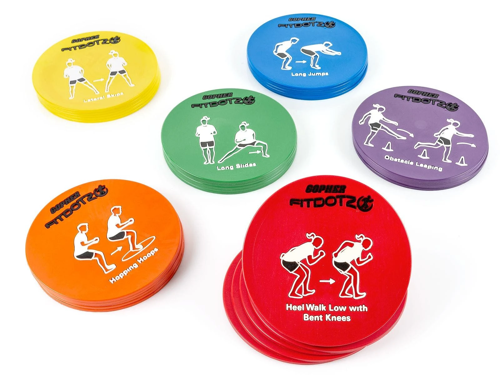 Each brightly colored spot features clear start/stop images of a physical movement designed to increase basic locomotor proficiency in younger students. Use them to easily set up skills stations or incorporate them in games and activities and watch students hop, jump, and skip with excitement!