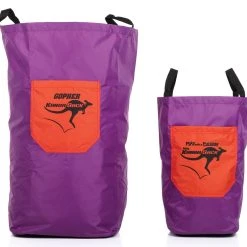 Standard KangaSack is 26″H x 16″ dia. Mini KangaSack is 18”H x 16” dia.