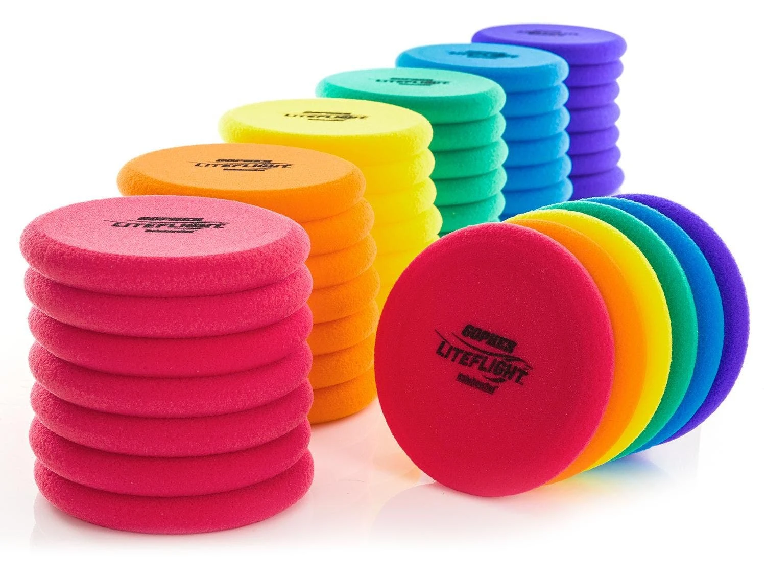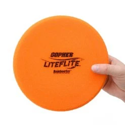 Extremely lightweight, uncoated foam is easy for beginners to grip and throw. Ideal for use indoors, the soft design will not leave marks on gym floors or walls. Discs feature a lip on the bottom side for enhanced control. 8-1/2” dia x 1-1/4” thick.