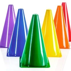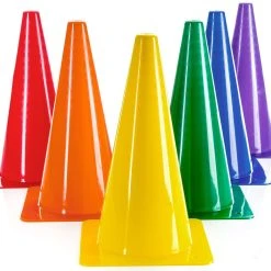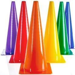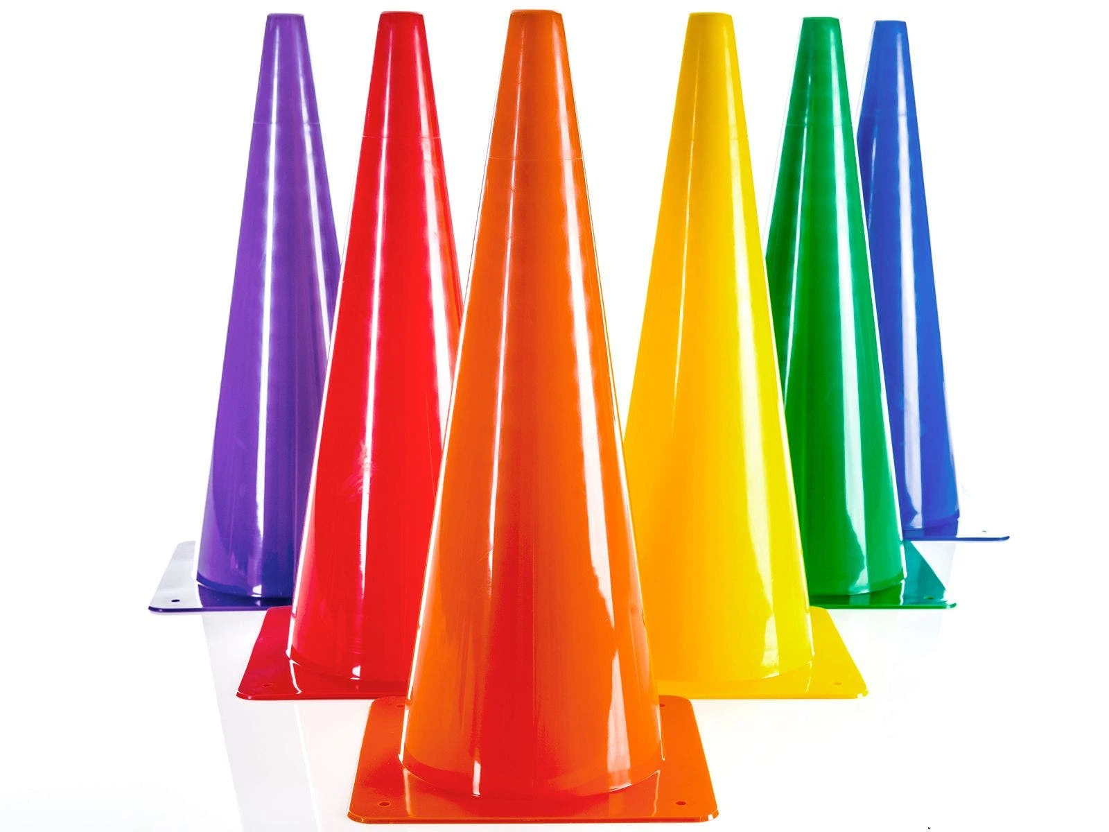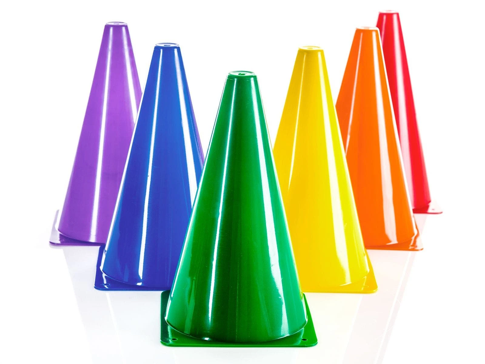 Bright Rainbow colors and multiple sizes allow for easy class and game organization. Quickly divide your students into different groups according to color and easily sort equipment in storage so you never lose a cone again.