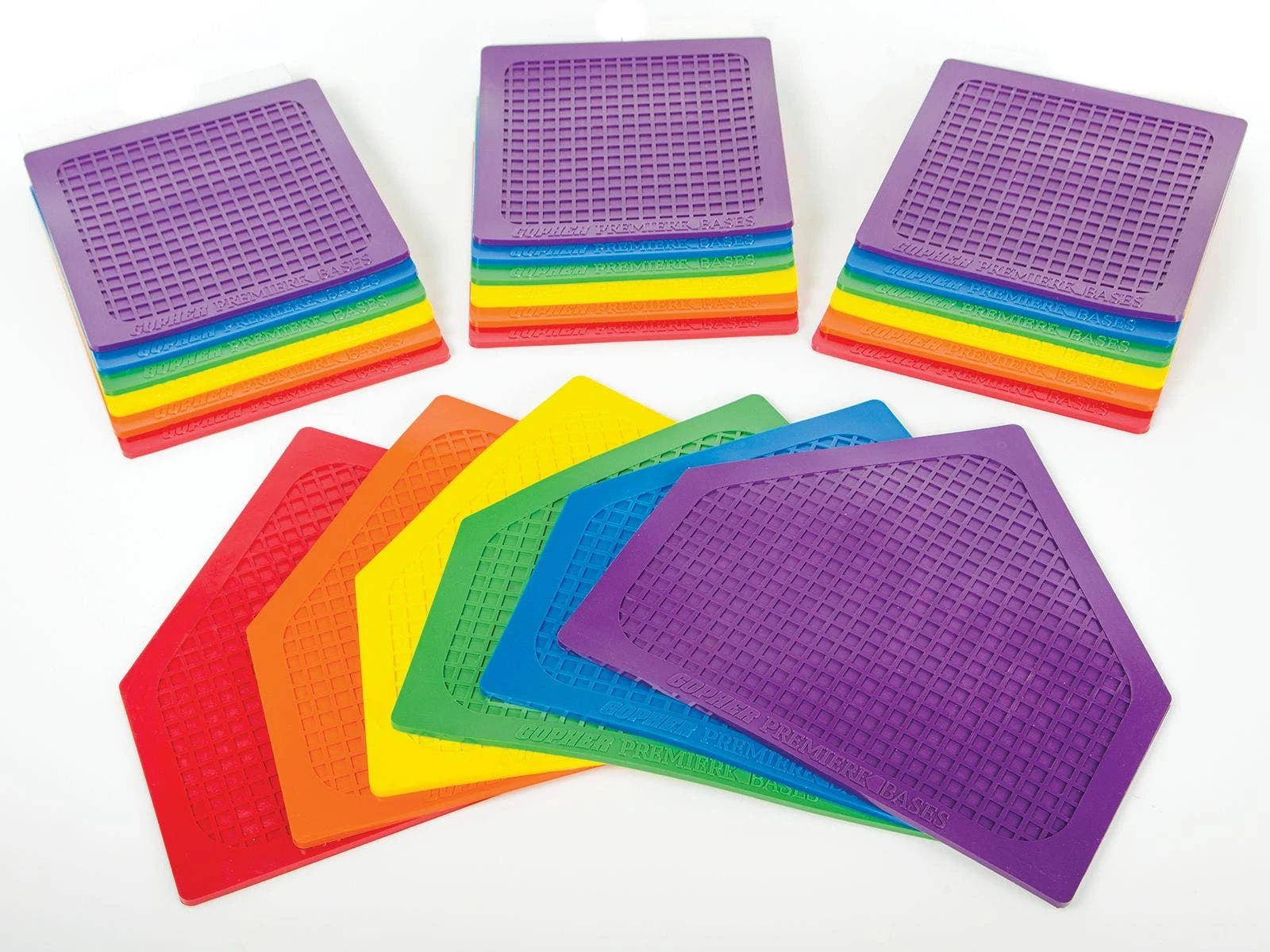 - Rainbow Set. Includes 24 bases (3 bases and 1 home plate in each color).