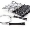 Braided polyester ropes are softer than PVC or segmented plastic options, so students won’t feel the sting of missed jumps when the rope hits their legs. Comfortable rope creates a nice arc while turning and won’t kink while in the air. Ergonomic handles offer better grip and control, leading to higher confidence among jumpers. Ropes are unlikely to slip, even when hands get sweaty and revolutions quicken.