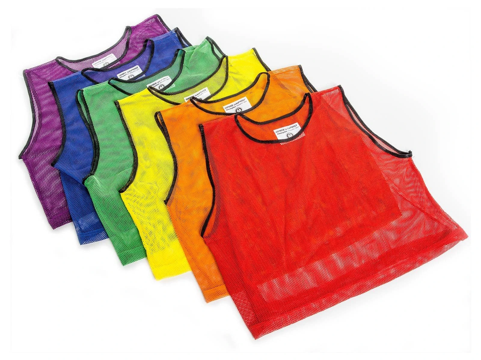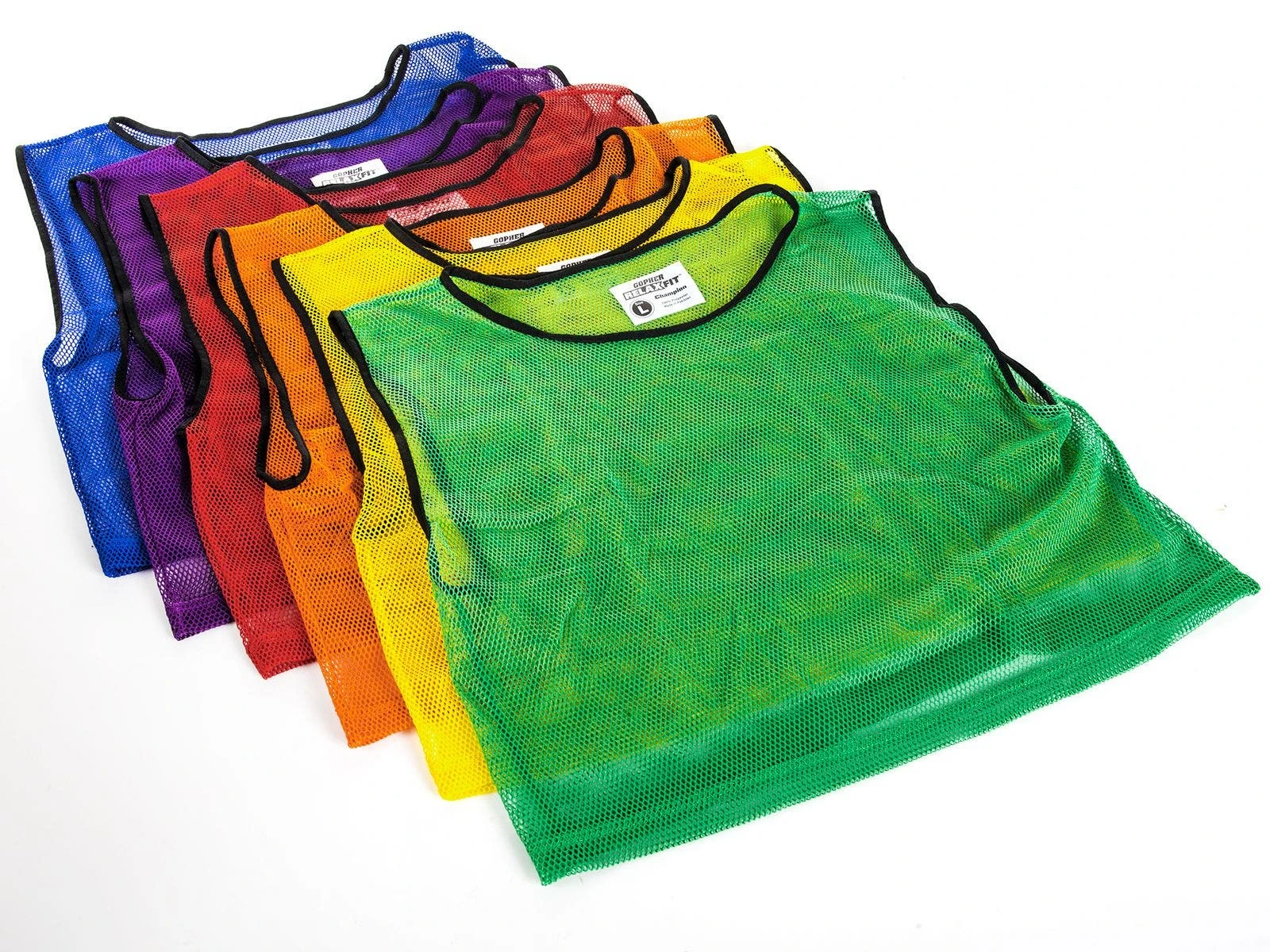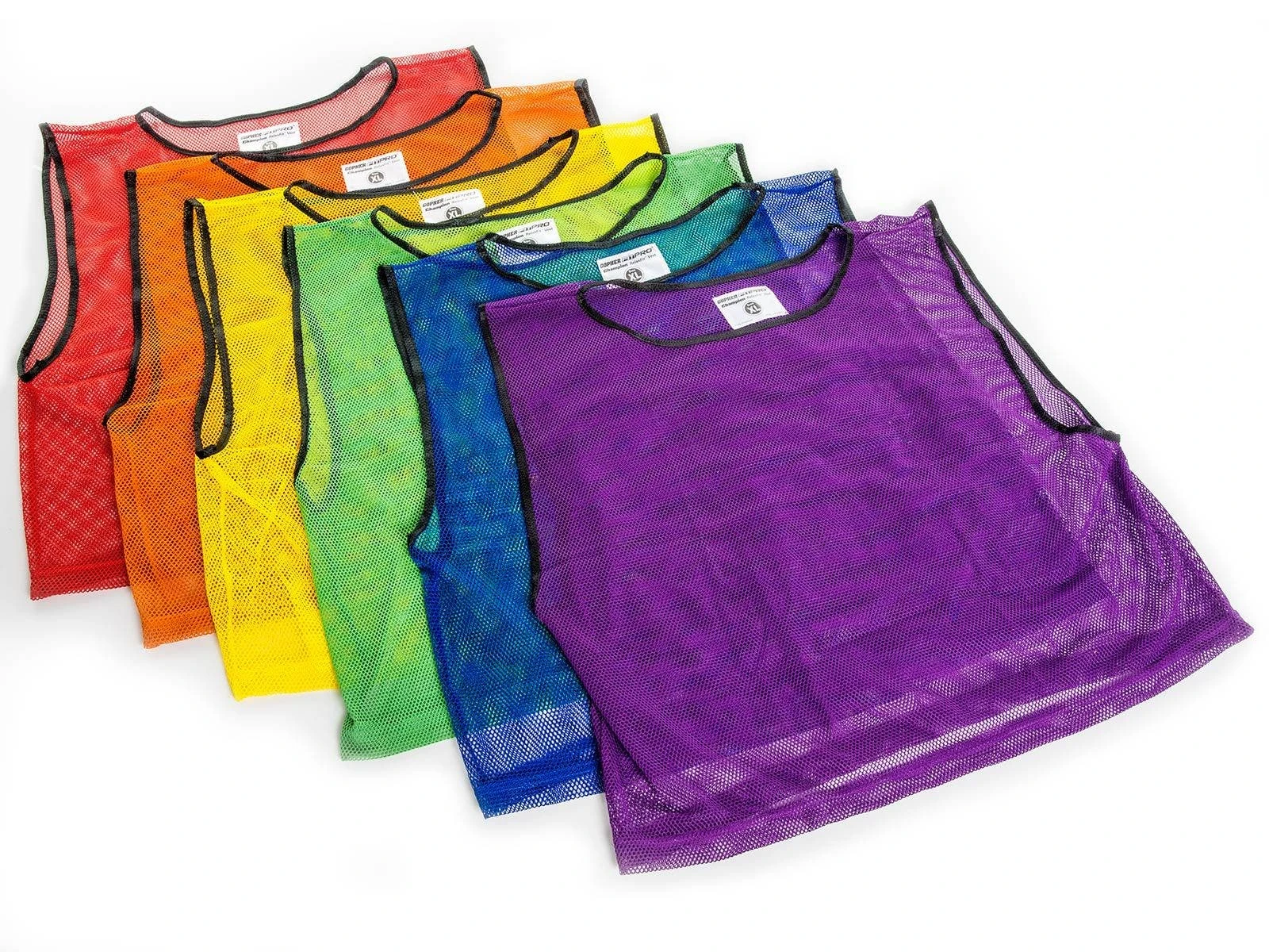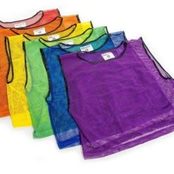 Straightforward design includes 3/8”W black trim on the neck and arm openings, making it easy to find them. Vests are easy to clean and machine washable. Six bright color options make it easy to identify teammates during practice or game play. A large tag helps students identify the perfect vest size.