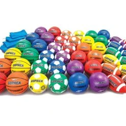 High quality construction and intermediate-sized balls in vibrant Rainbow colors to provide students with a premier solution to practicing and playing basketball, football, soccer, and volleyball. Three levels of quality make it easy to give your students the equipment they need to develop techniques and master the fundamentals.
