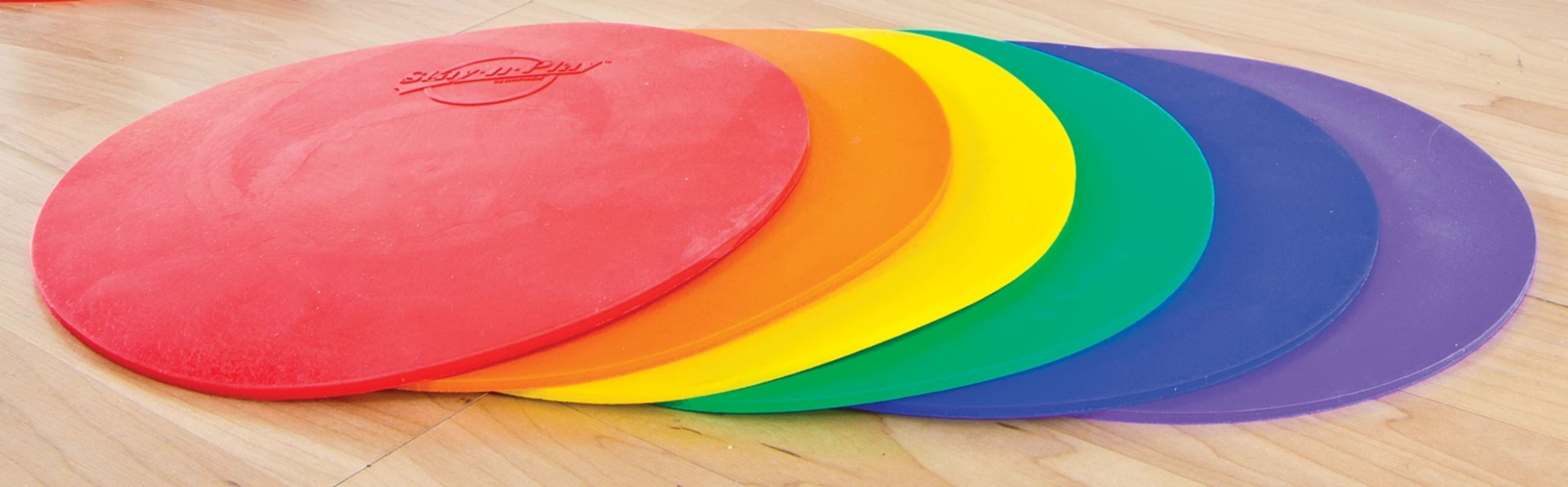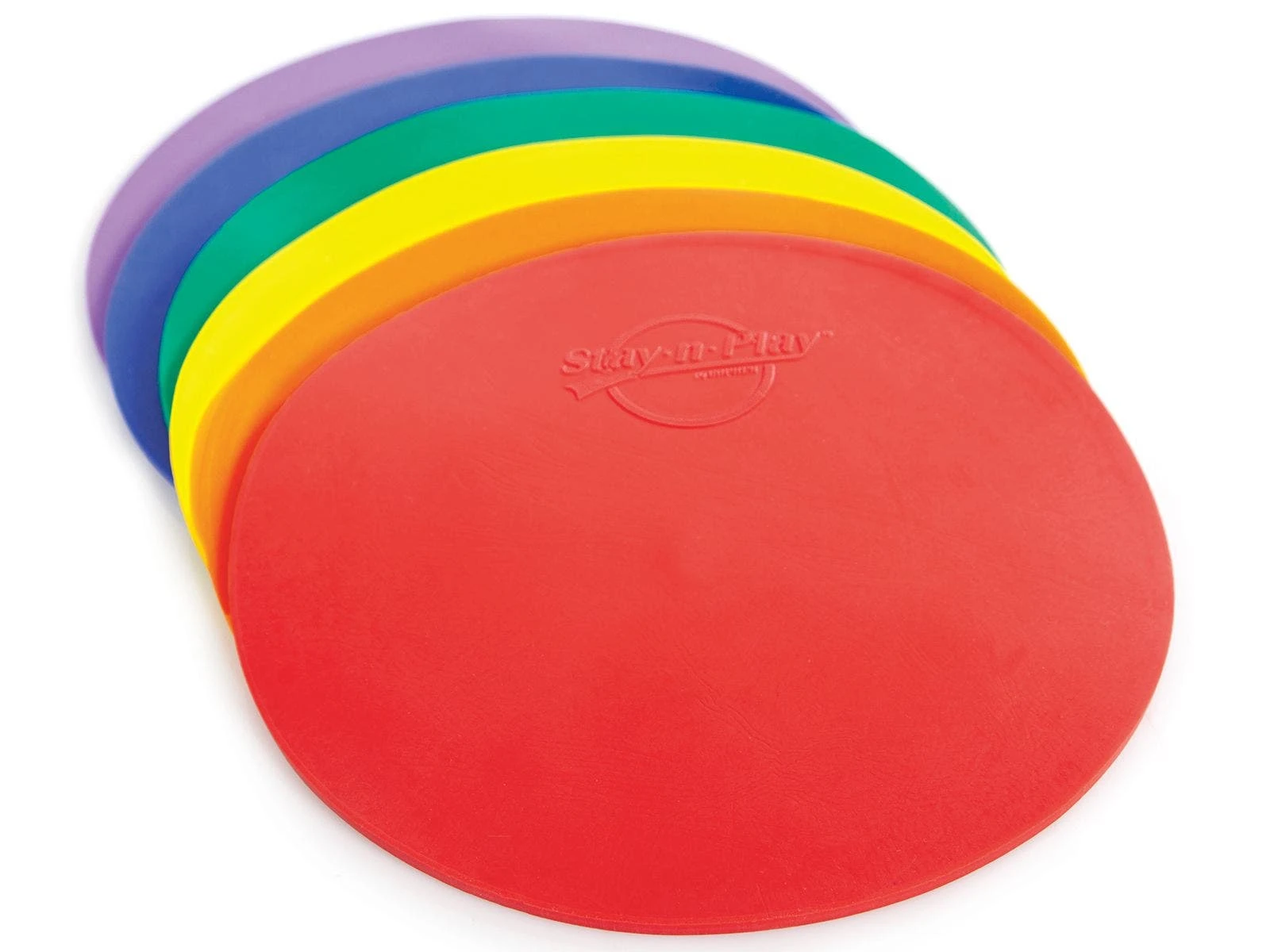 With a specially formulated tacky, nonslip material, these markers will “stay in play” throughout the entire game or activity!
