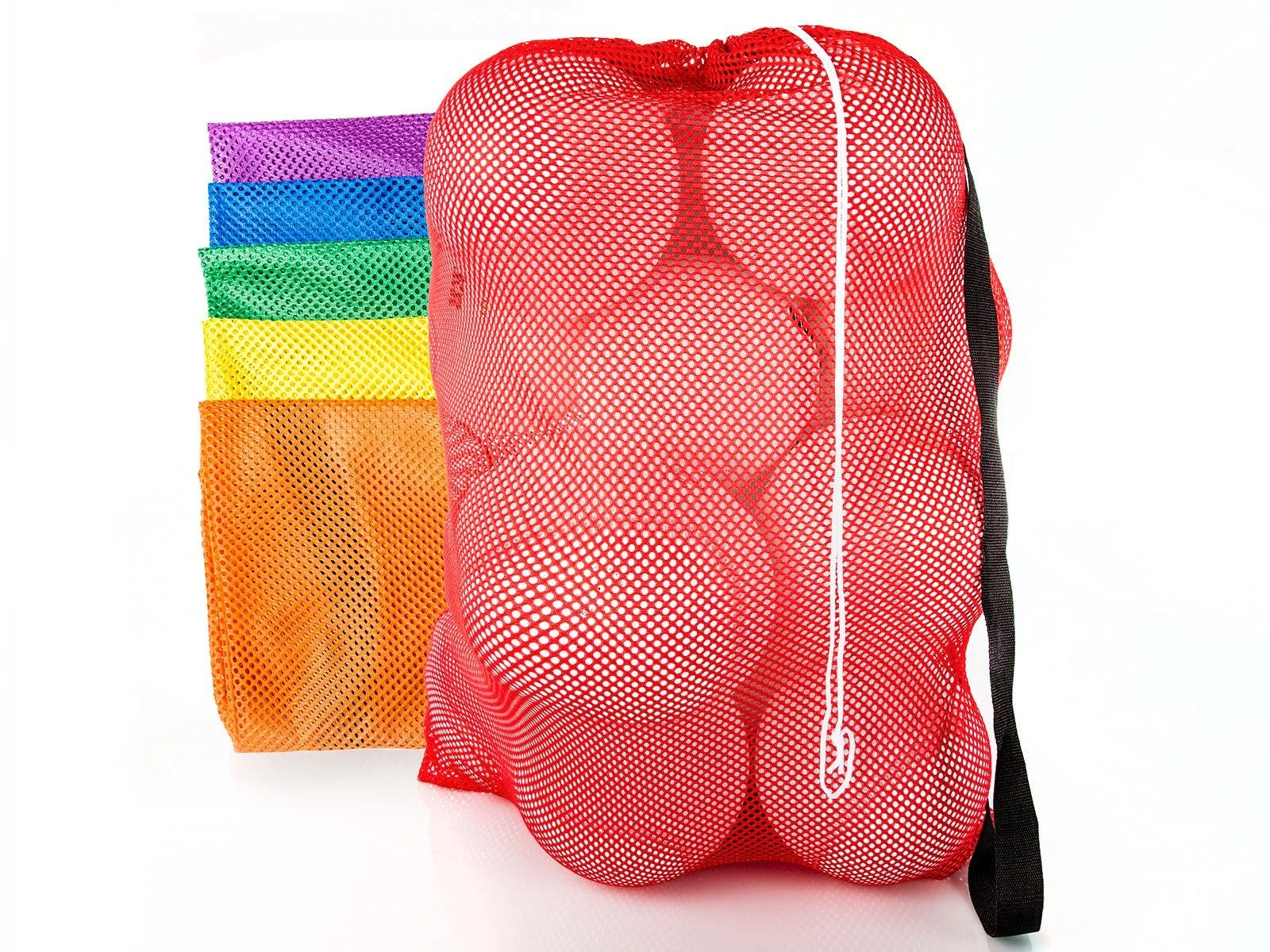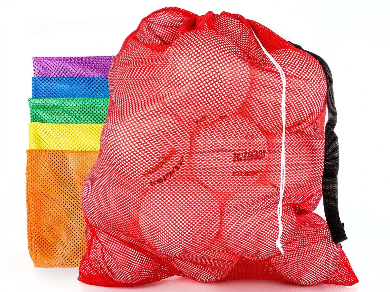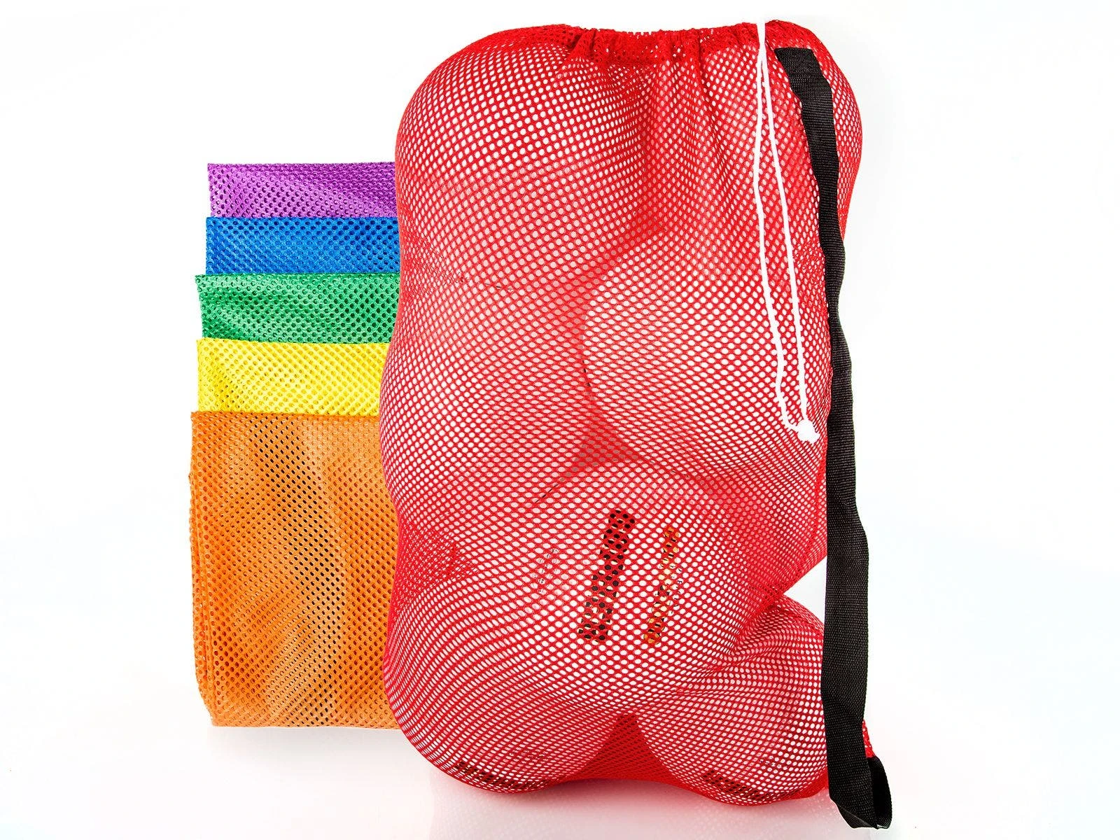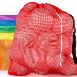 We took our versatile polyester VersaBag and added a comfortable shoulder strap to make carrying your P.E. equipment even easier! This improved bag features durable, see-through polyester mesh that helps you easily identify contents and boosts airflow to prevent moisture and mildew. It’s also lightweight and soft to the touch, making it gentle on equipment inside and on your skin for added comfort. Keep it all secure with a durable cord closure and slide lock. Rainbow colors make it easy to identify and organize balls.