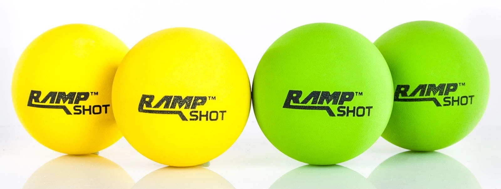 Complete Set includes 2 stackable ramps with goal nets, 4 game balls (2 Ea green, yellow), and game instructions. Set of 4 replacement ball also sold separately.