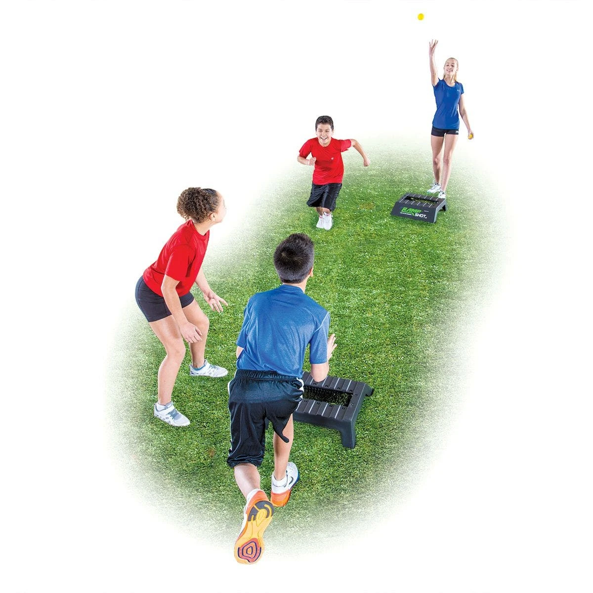 These tossing games for kids feature specially-designed ramps with a center goal net and a grooved top that guarantees wild bounces to keep players on the move. These four-player outdoor tossing games use 2 specially-designed ramps and 4 bouncing balls the size of a racquetball. Similar to yard games like corn hole, teammates stand on opposite sides of the playing area. Players earn points when they toss the ball in the net or their partner catches a ball that bounces off the ramp!