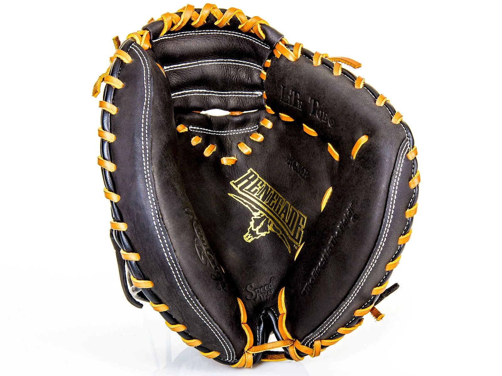 Baseball mitts are made with 100% oil-tanned full-grain leather, increasing the durability of the glove. Its one-piece closed web forms a deep pocket to help catchers control and scoop the ball, and provides more catching support overall. Its design is based on authentic pro patterns and comes with a Fastback single-finger opening. D-ring strap, combined with palm and index finger pads, protects the catcher’s hand.
