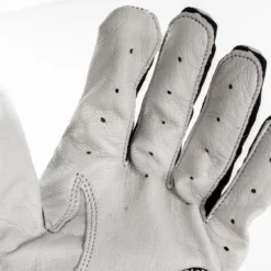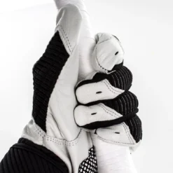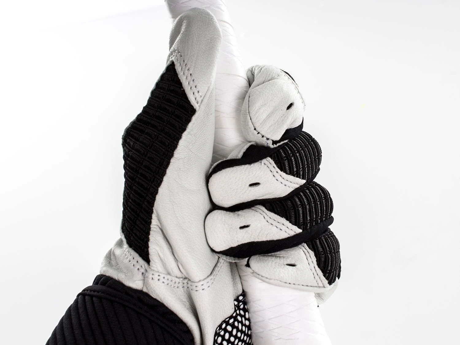 A compression wrist strap closure provides a snug fit during at-bats. Each palm is treated with specialized Oil Tac care for improved grip, while still maintaining maximum softness. These black batting gloves stretch according to the user’s hands for a personalized, comfortable fit.