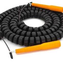 Amp up your cardio routine for a full body workout using jump ropes with weights! Weighted rubber beads add resistance to each turn and resist cracking and breaking when they come in contact with the floor. Constructed with durable 3 mm steel cable speed ropes, these jump ropes last turn after turn. Plastic handles provide a comfortable grip and feature ball-bearing metal swivels for smooth-turning revolutions. Handle color designates weight. 9’L.