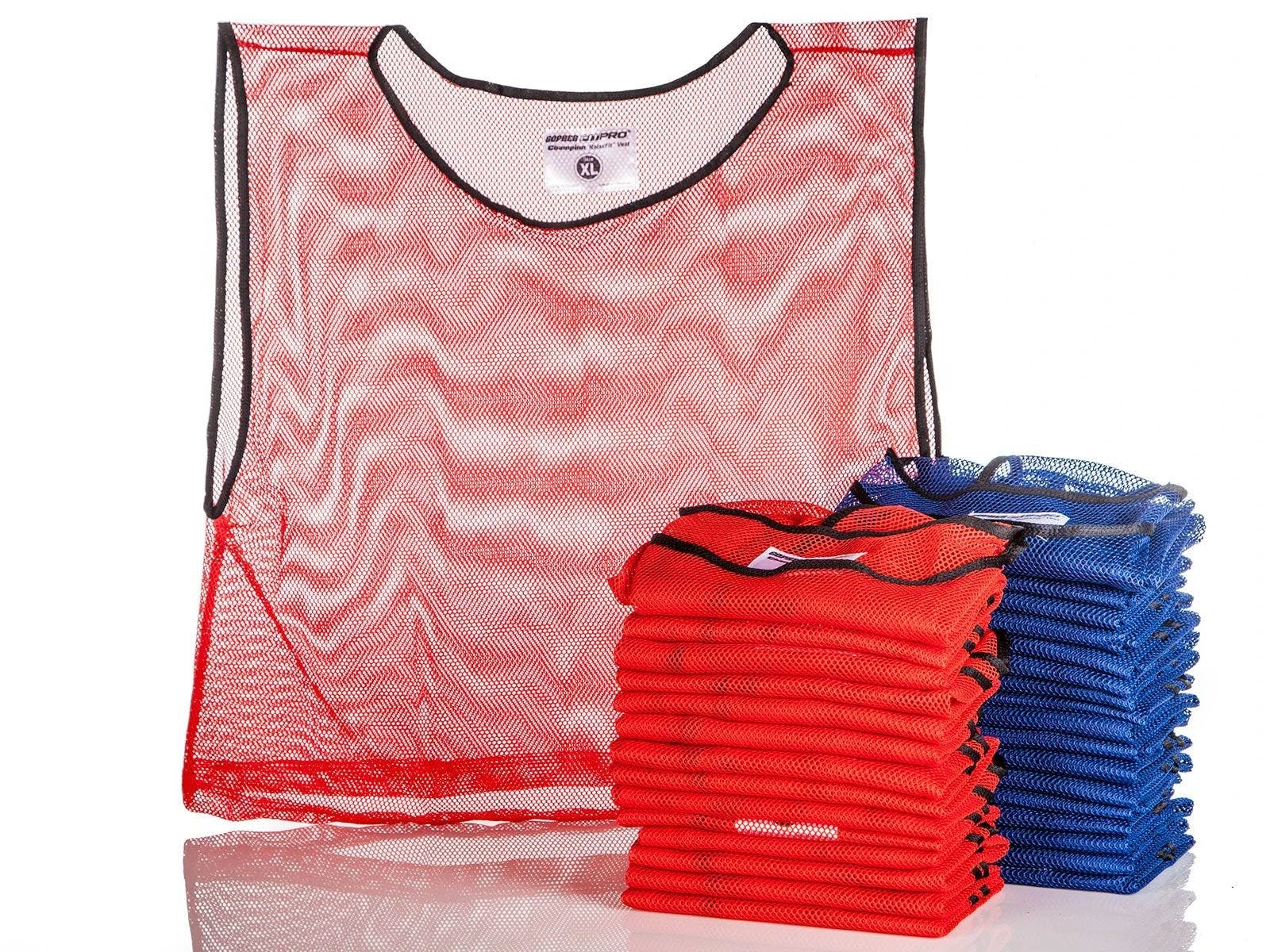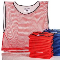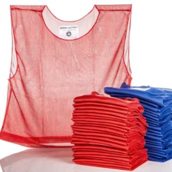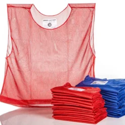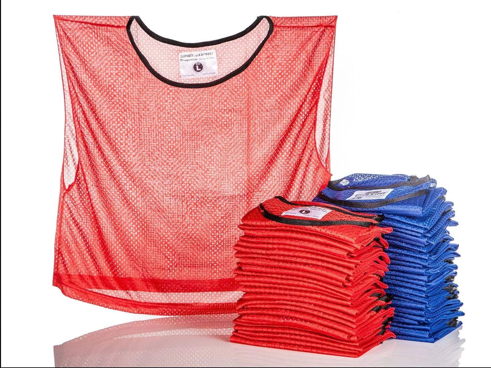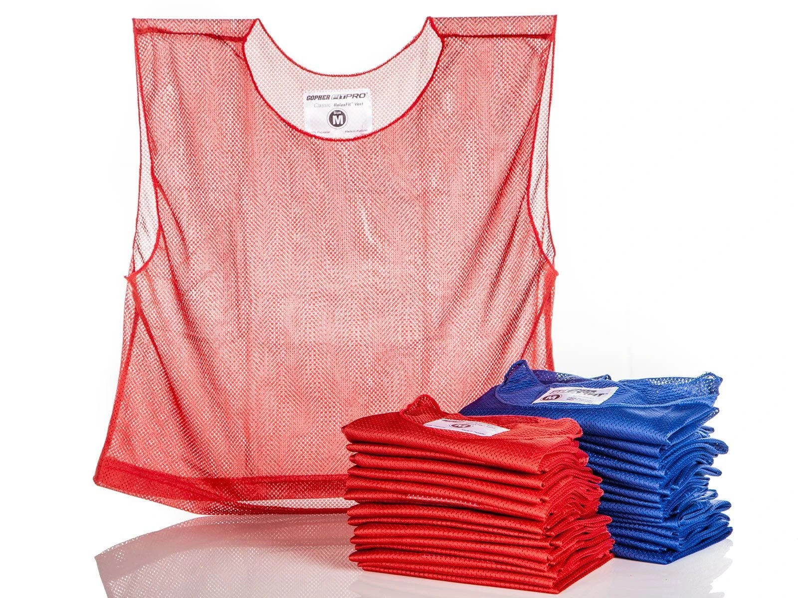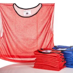 Enjoy maximum comfort with the heavy-duty 100% polyester fabric and a large open weave. Reinforced stitching increases the durability while still keeping the vest lightweight. An elastic-free bottom ensures the vests do not bunch up when putting them on or ride up during a game. An oversized neck and arm openings add comfort and make it easy to put on and take off the vests. A large tag helps students quickly grab the correct size at a glance. Vests are machine washable.