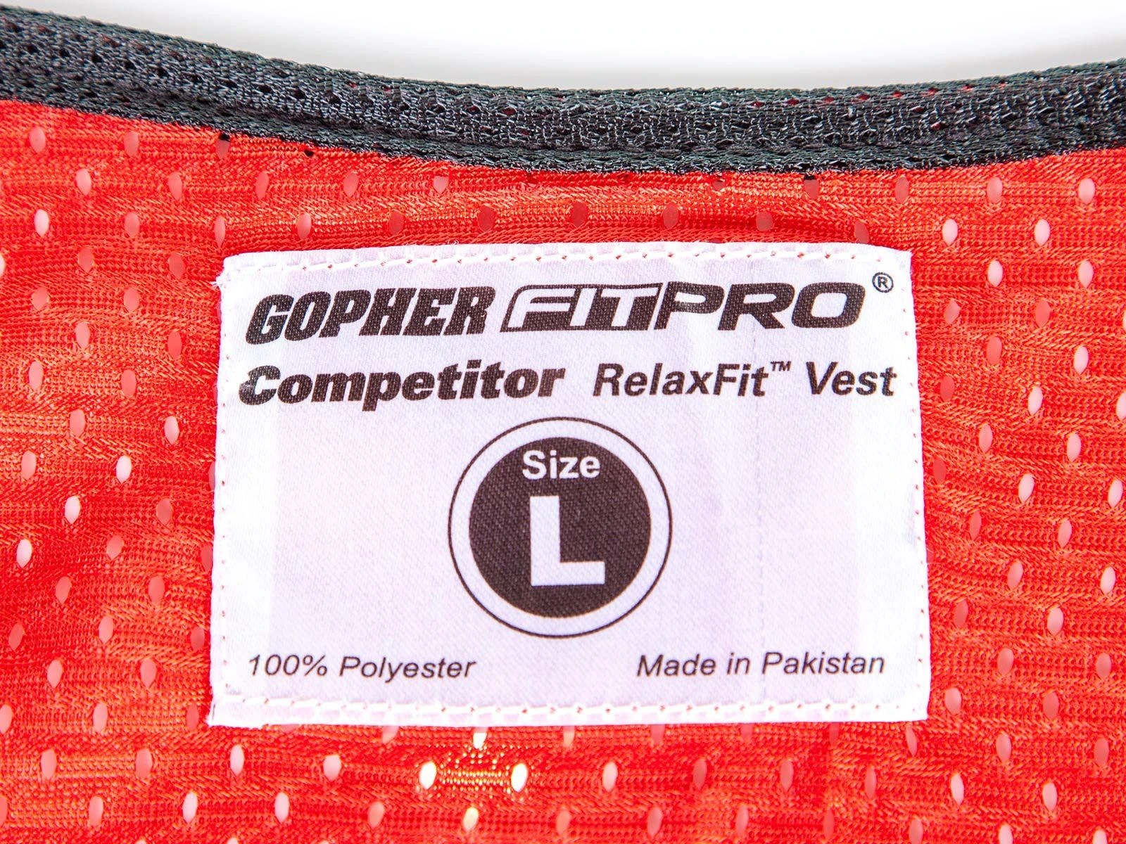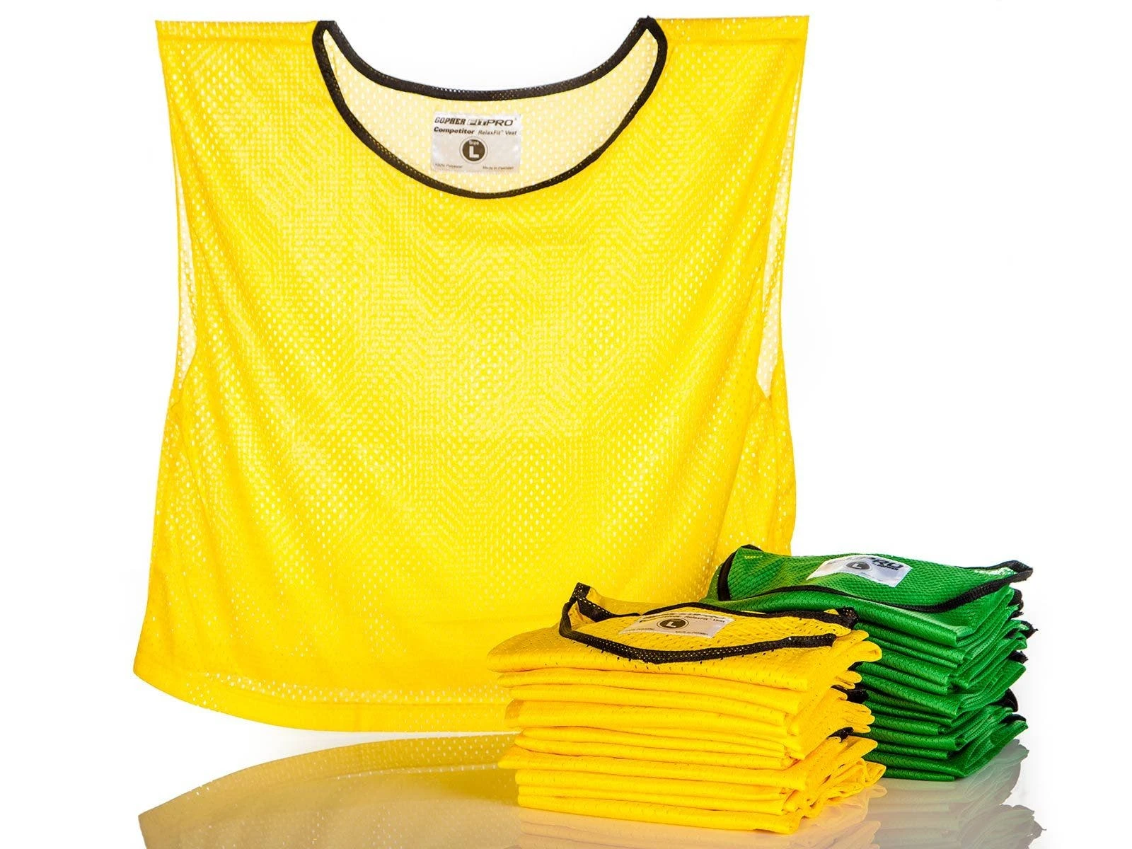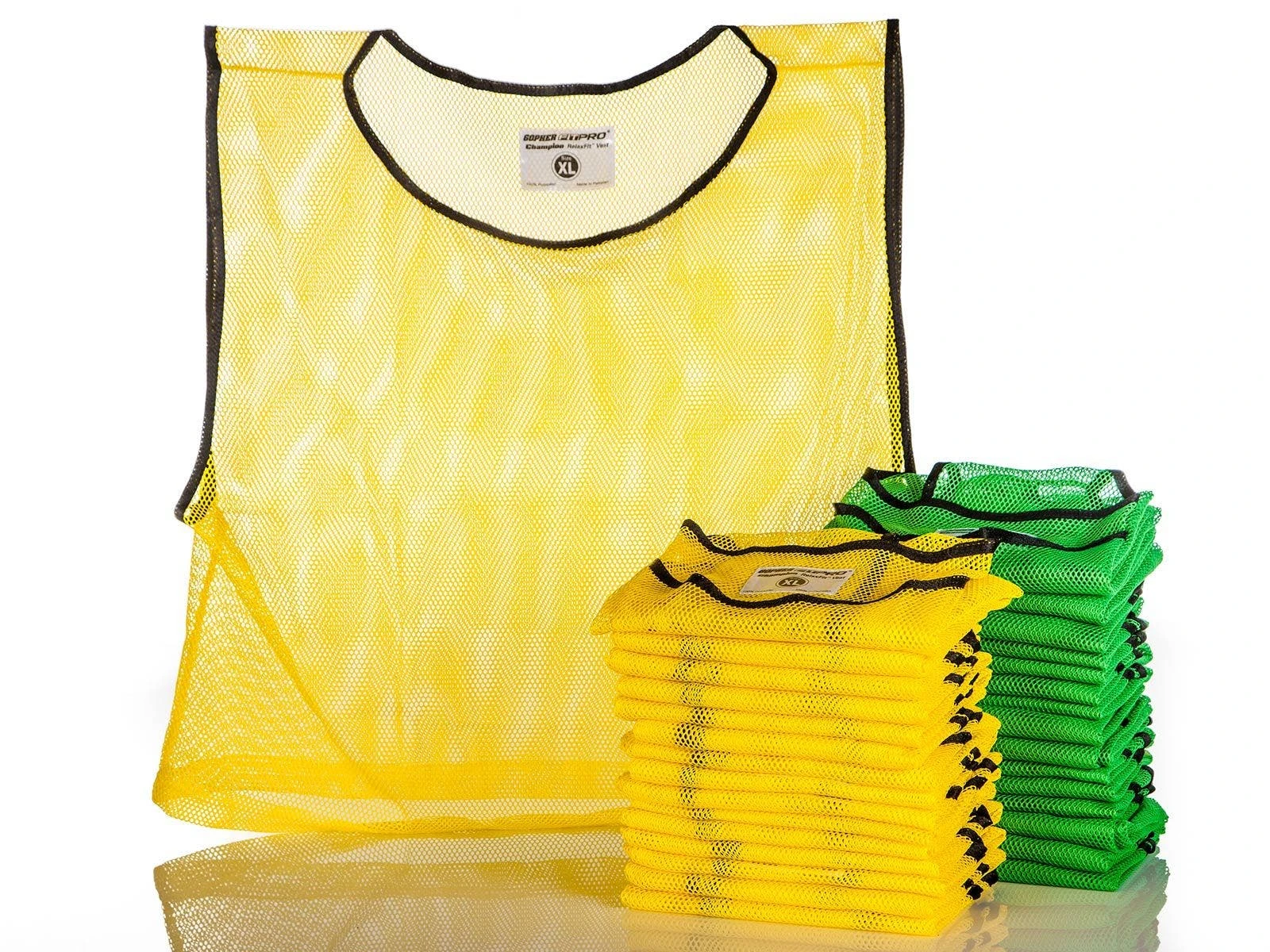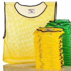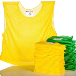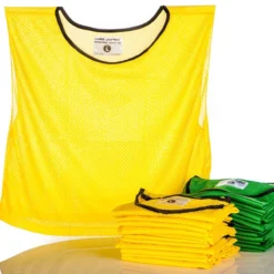 Enjoy maximum comfort with the heavy-duty 100% polyester fabric and a large open weave. Reinforced stitching increases the durability while still keeping the vest lightweight. An elastic-free bottom ensures the vests do not bunch up when putting them on or ride up during a game. An oversized neck and arm openings add comfort and make it easy to put on and take off the vests. A large tag helps students quickly grab the correct size at a glance. Vests are machine washable.