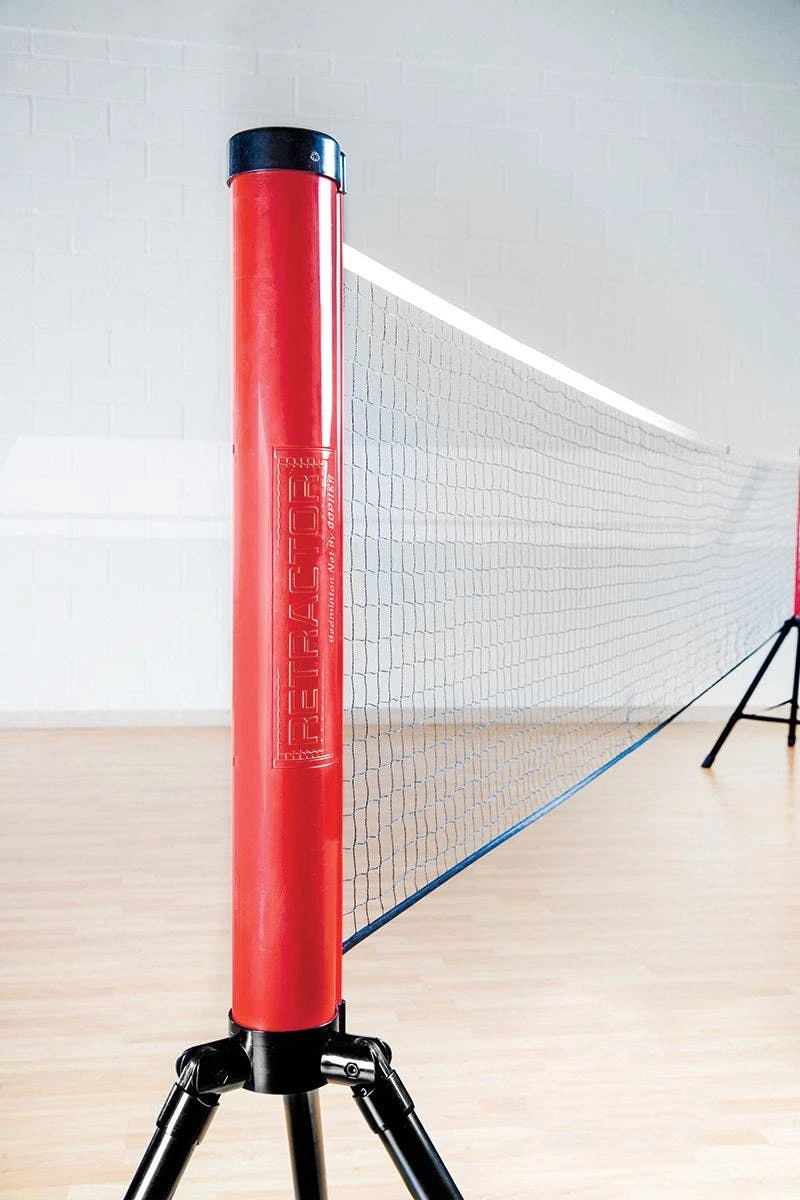 This all-in-one net system is completely housed within two canisters, eliminating the need to remove it from the frame and roll it up for storage. The net is automatically dispensed when the two canisters are pulled apart. When the action concludes, simply press a button and watch it retract by itself!
