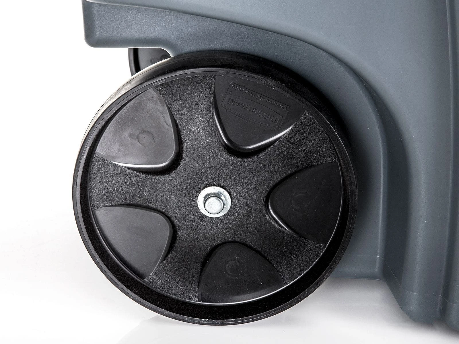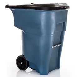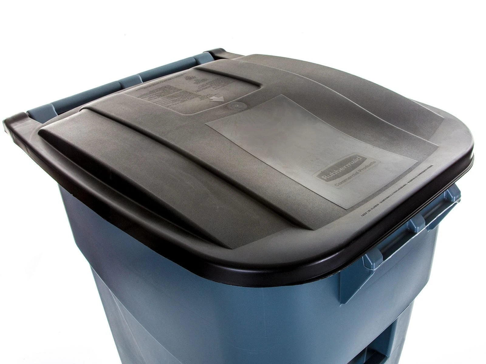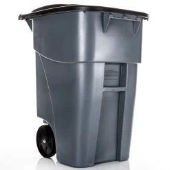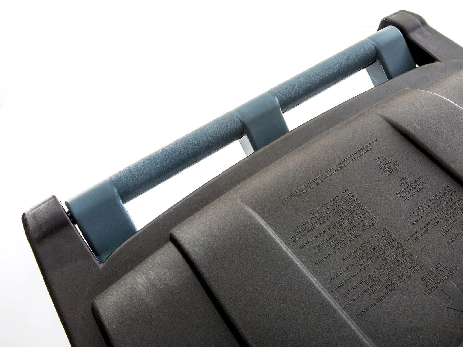 High-density polyethylene (HDPE) construction is UV- and warp-resistant, and able to withstand rough wear over time. A hinged top provides quick opening and closing for easy access and safe storage, also locking in place when open to prevent flapping. At their base, molded-in axle retainers add strength and stability. Inset wheels prevent marring in cramped spaces, and a molded-in footer helps to quickly tip containers onto their wheels for easy transport. 50-gallon bins feature 2 heavy-duty 8” wheels, while 95-gallon bins rely on 2 superior 10” wheels.