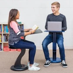 All-in-one desk is all about convenience and ease of use! The seat and writing surface are connected to each other, making it simple for students to bring their workspaces with them. The chair includes a slightly domed bottom that lets students rock gently in any direction, while balancing and working their core at the same time. The backless design also promotes good posture. A 15″L x 18″W desktop is connected to the chair, allowing it to move with the seat as the student rocks. A slight texture covering the entire structure provides students with tactile stimulation as they brush their fingers across it, helping them concentrate.