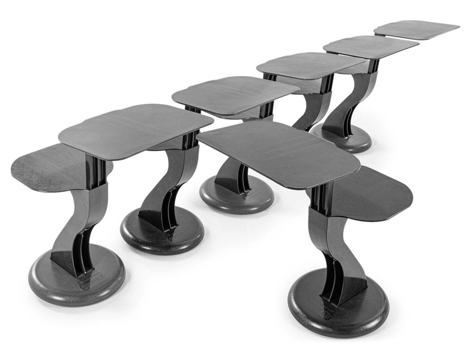 The chair supports up to 250 lb; desktop holds up to 150 lb with a student seated on the chair. Simple assembly. Set includes 6 chairs in either black or navy. 28″L x 18″W x 32″H; 14 lb. Patented.