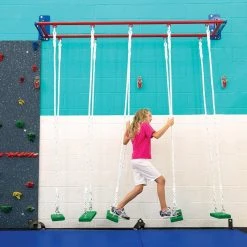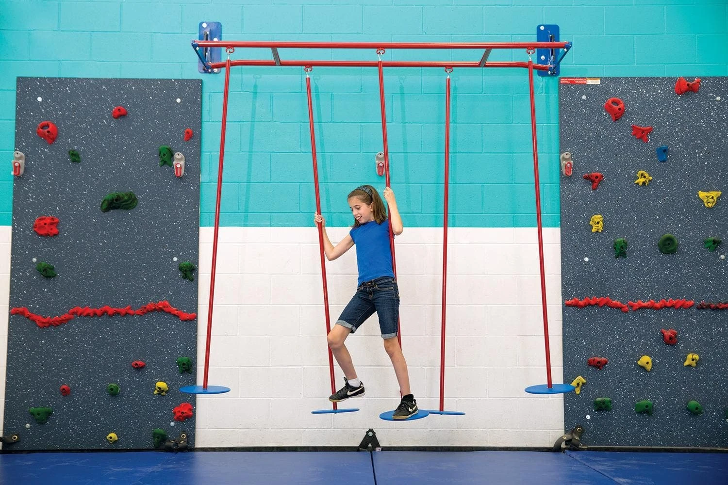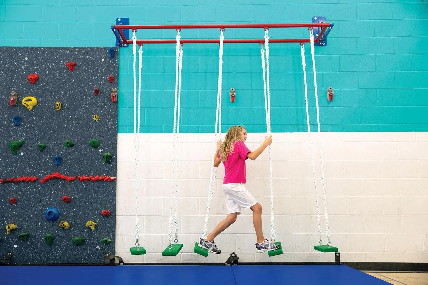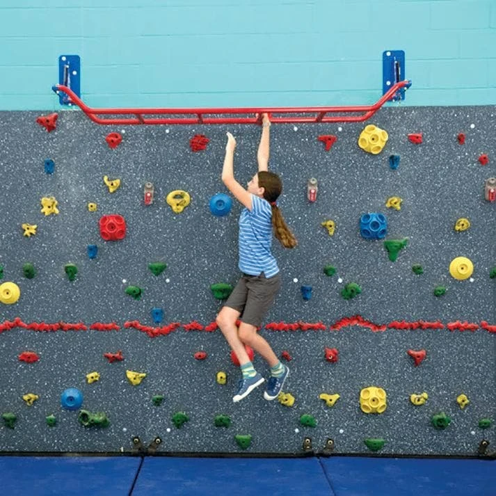 Combine these wall-mounted obstacles with traditional traversing walls to help students work on endurance, spatial awareness, flexibility, upper body strength, and core strength. Mount them directly to the wall above the climbing wall to add a challenge when students reach the top, or add them between wall sections to lengthen the course.