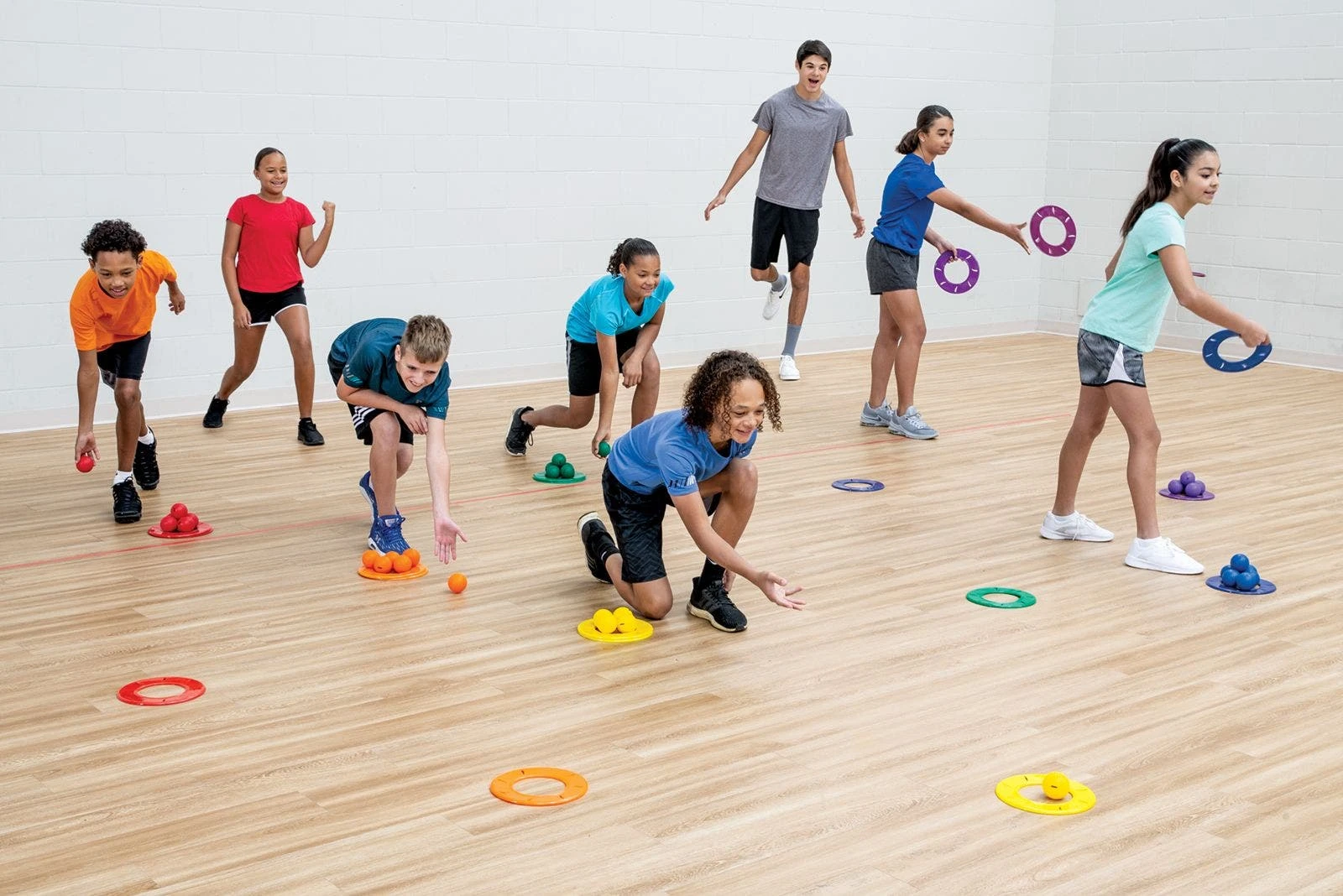 Players need to be fast and strategic while throwing discs and balls during these fast-paced games! Each team starts with 3 discs and throws one to the spot of its choice. After the disc lands, teammates roll or toss a golf ball in their team color into the center of the disc. The team then throws its second disc and repeats this process until they cross the finish line! Throwing the disc farther may help teams advance faster or make it harder to land the golf balls in the disc. A shorter throw may make throwing the golf balls into the disc easier, while taking more time to get to the finish line.