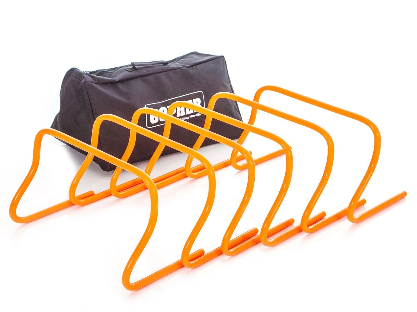 Lightweight, yet durable PVC hurdles are easy to set up for drills and pick up for storage. The included storage bag fits a complete set of 6 hurdles to easily organize, store, and take them anywhere! Bag is constructed of durable nylon material to last against routine use.