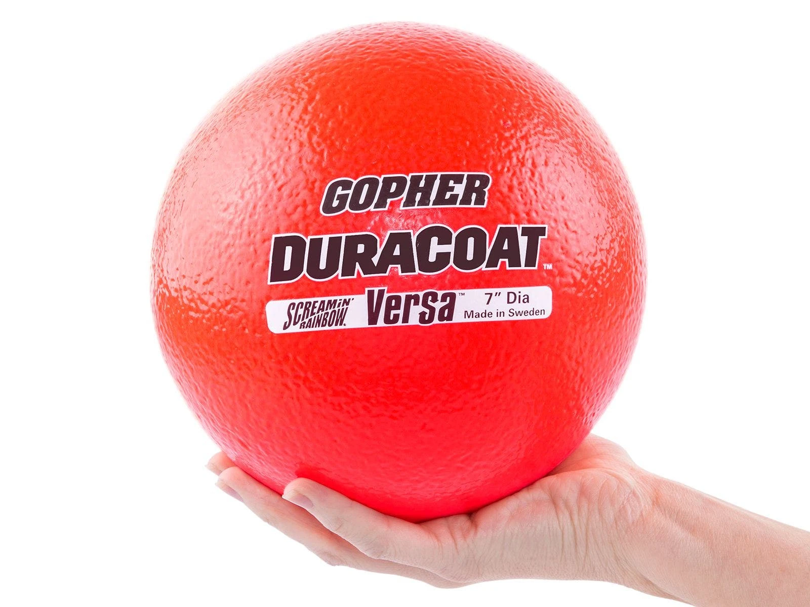 Make activities brighter and create excitement with these vivid Screamin’ Rainbow coated-foam balls. The slightly firmer, medium-bounce foam in this multipurpose ball makes it a great addition to volleyball, soccer, or tossing-and-catching activities during PE classes. The 7″ dia is an ideal size for most students. The triple-layer DuraCoat cover is extremely tough and pickproof, while also adding extra grip for more success while throwing and catching the balls.