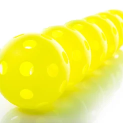 Lightweight, hollow design features holes to slow the balls during flight, making them a safe, class-friendly option for all ages. The slower, shorter flightpath is perfect for batting practice in tight spaces.