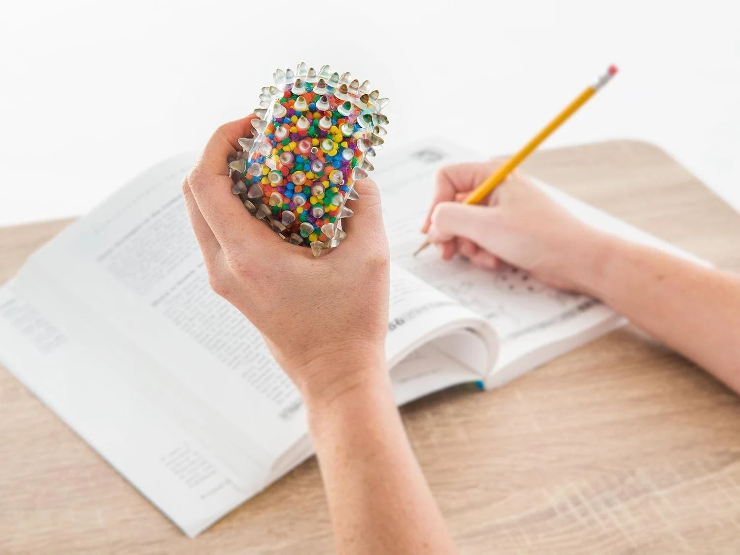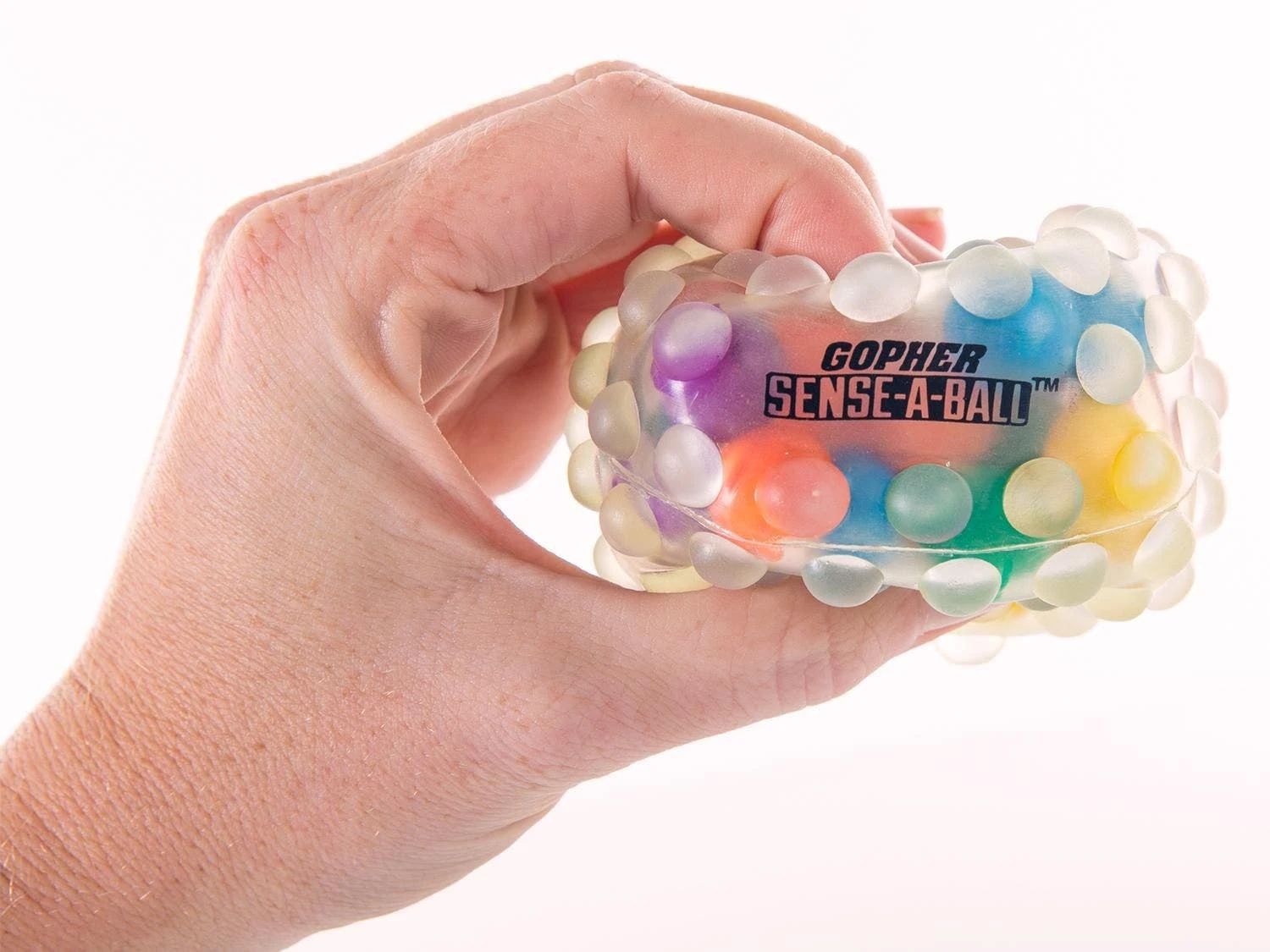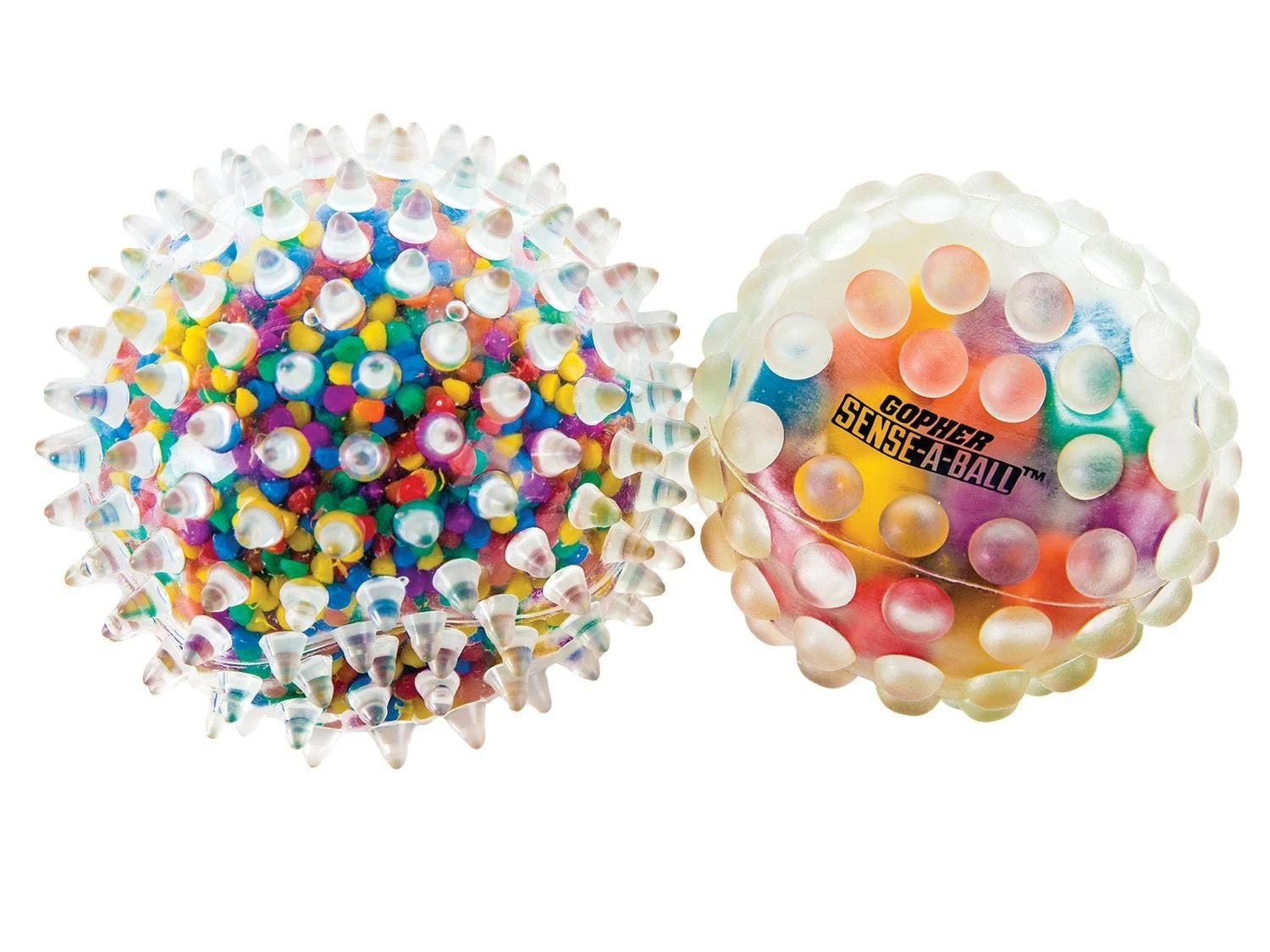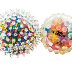 Soft, plastic balls are filled with Rainbow beads that move when squeezed for sensory stimulation. This helps build motor skills, while also encouraging emotional and social growth. Holding and squeezing these balls helps students focus and absorb information, while also providing a calming effect. The balls are quiet, so students will not disrupt others while using them during class. They also serve as excellent sensory balls for autism.