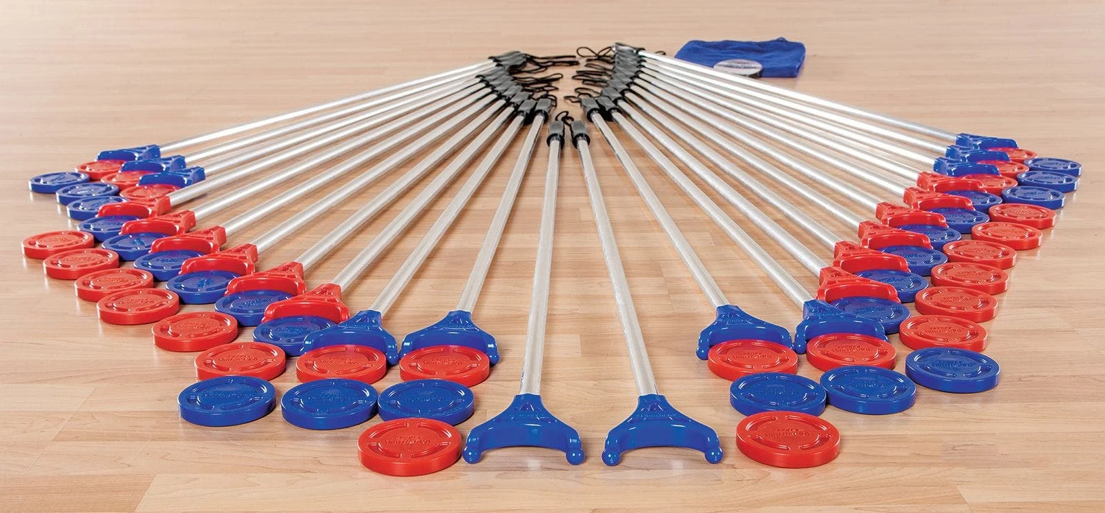 Complete Set includes 24 cues (52″L), 48 discs (3-1/2″ dia), 1 roll of deluxe vinyl floor tape, 1 DuraBag duffle, and activity instruction.
