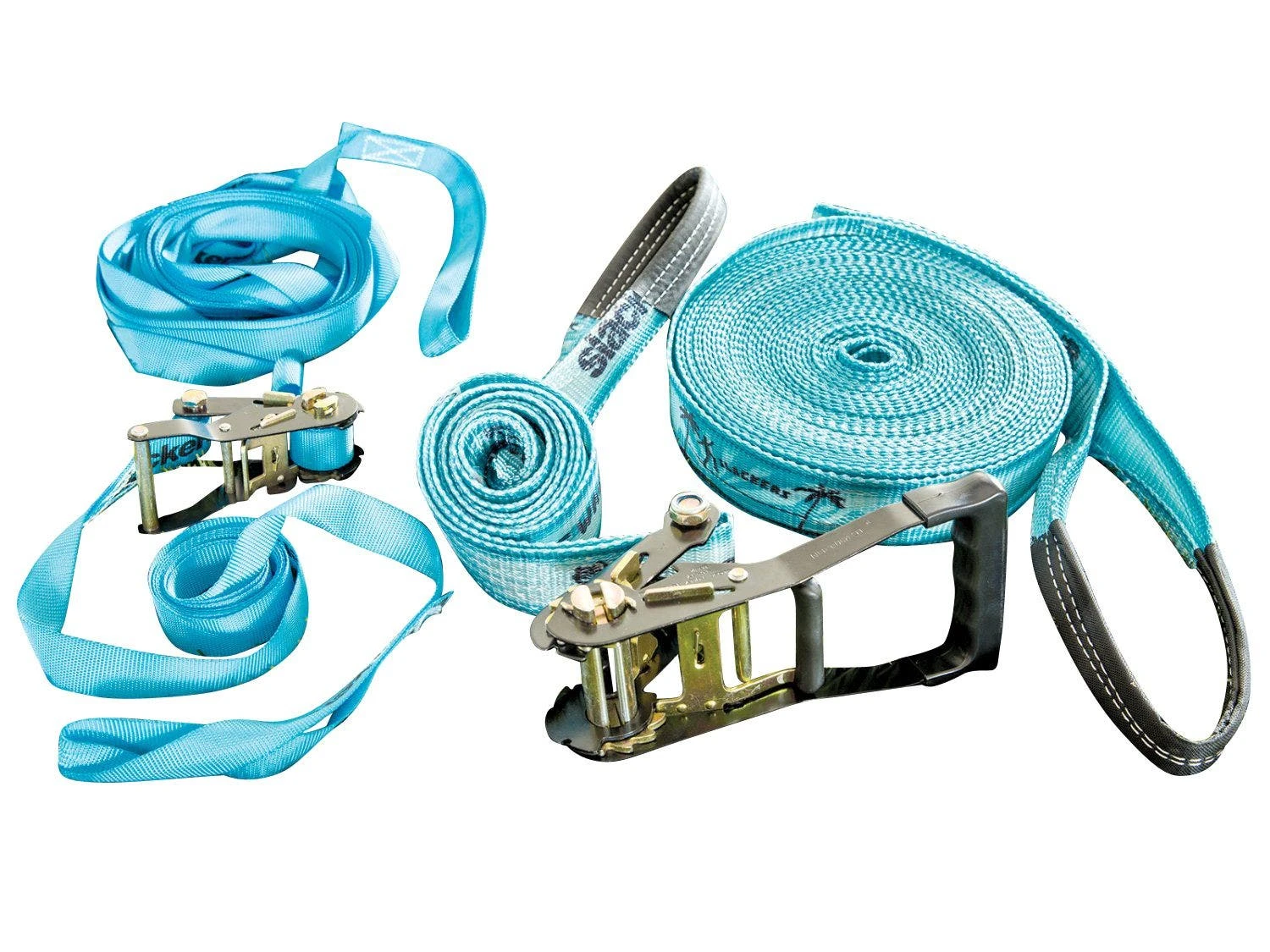 Set includes holds slackline, overhead line, tension ratchet, instructions, and a storage bag so everything stays organized and easy to transport.