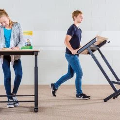Powder-coated steel frame and melamine top have a premium look and built for long-lasting use. Rubber leveling feet ensure the desk is stable and will not scuff classroom floors. When you need to move the desk, simply tip and roll it on the built-in wheels to the desired location.