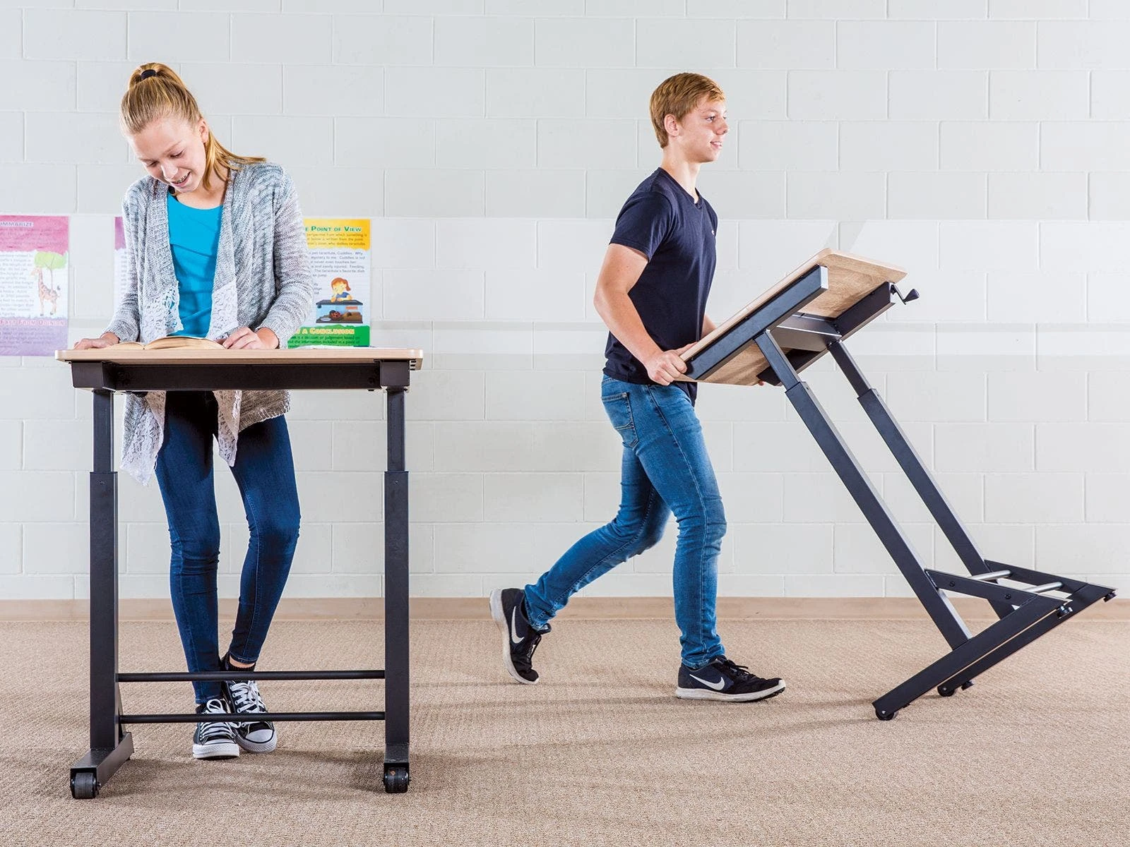Students can study at their own level with desks that quickly adjust by 6” using a built-in hand crank. Students or teachers can easily use the crank to raise or lower the desktop to the ideal height. After making adjustments, store the crank under the desktop for convenience. A built-in footrest lets students shift their weight from one leg to another for increased comfort during long classes or periods of use.